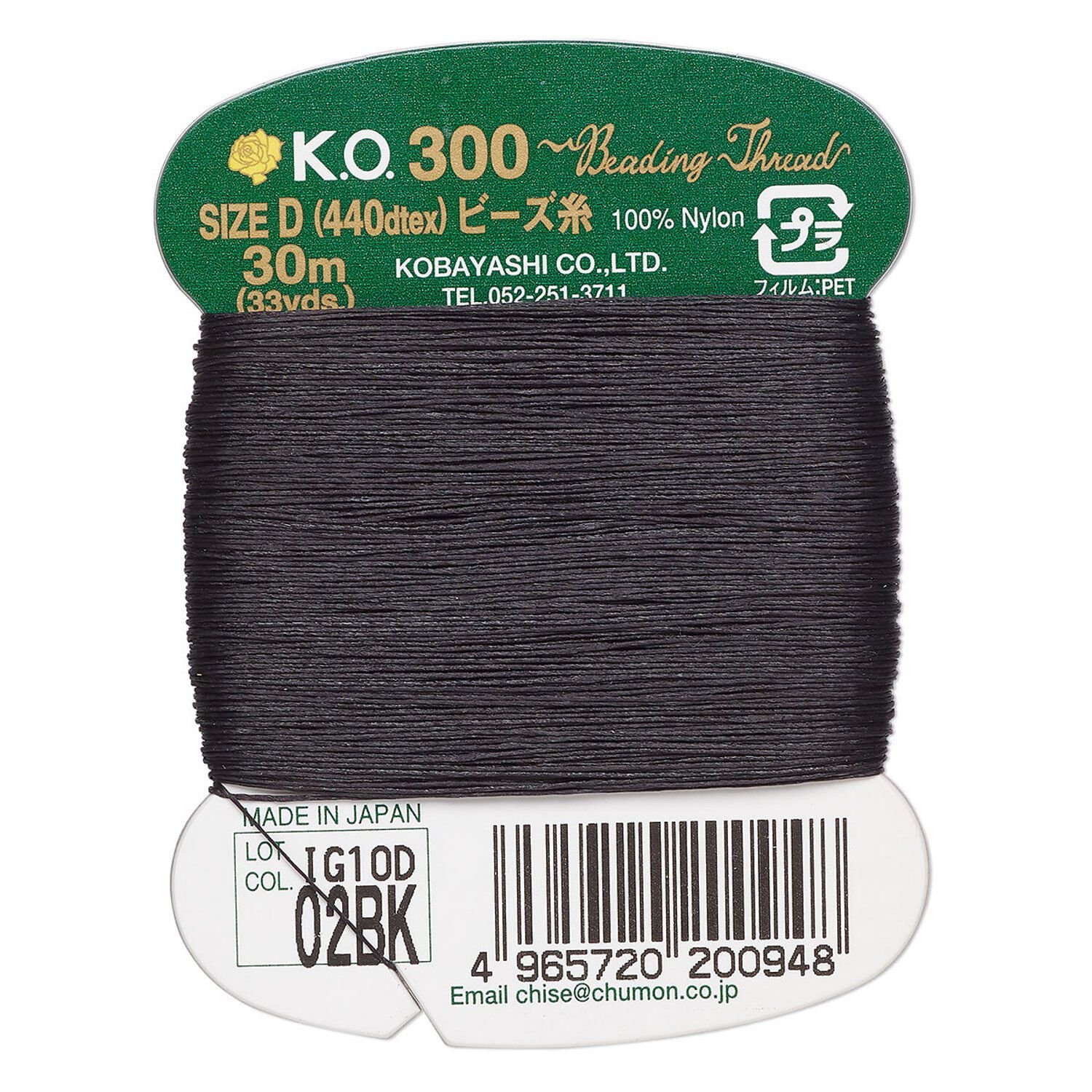 Thread, K.O., waxed nylon, black, 0.15mm diameter, 4-pound test. Sold per 33 yard card.