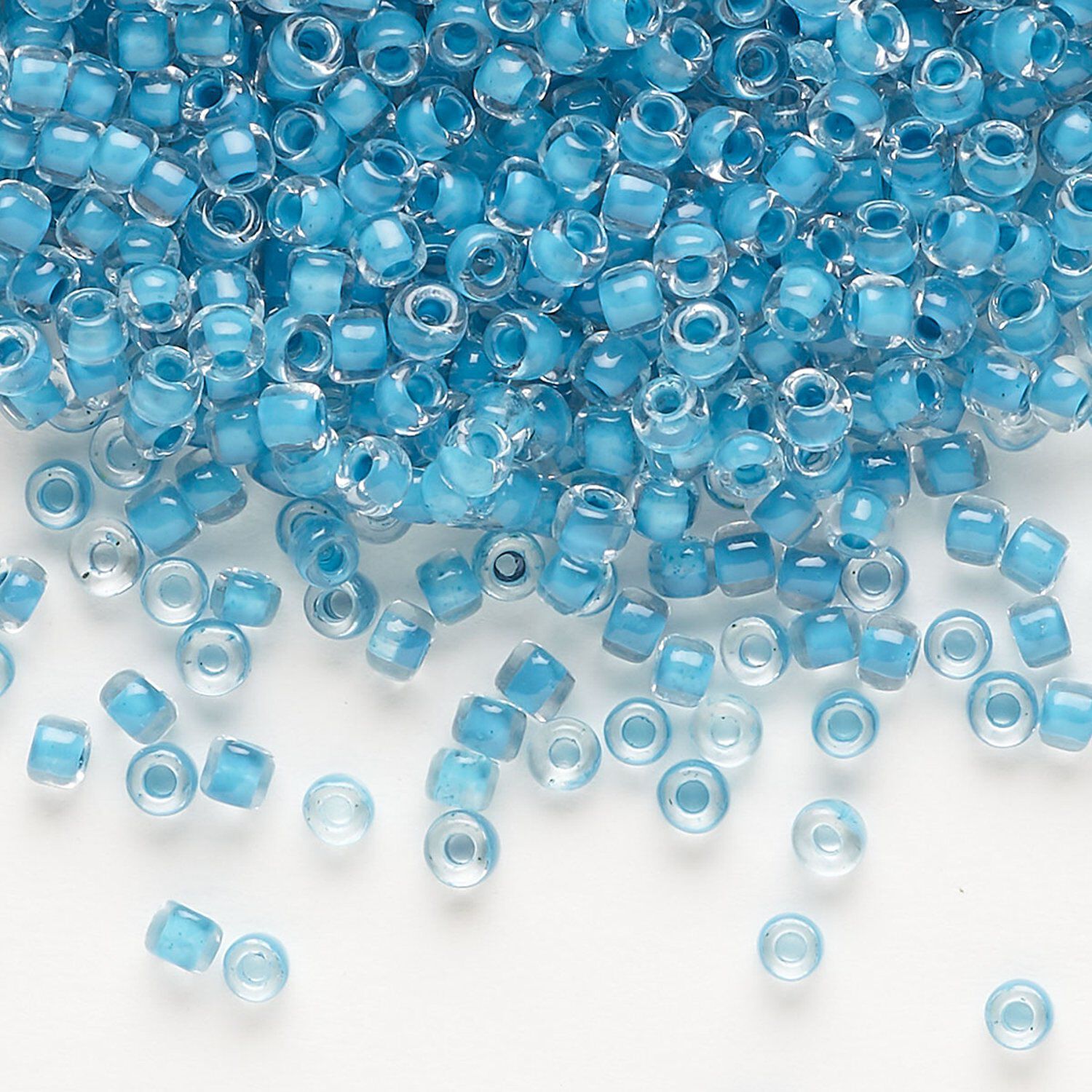 Seed bead, Dyna-Mites™, glass, translucent inside color turquoise blue, #8 round. Sold per 1/2 kilogram pkg.
