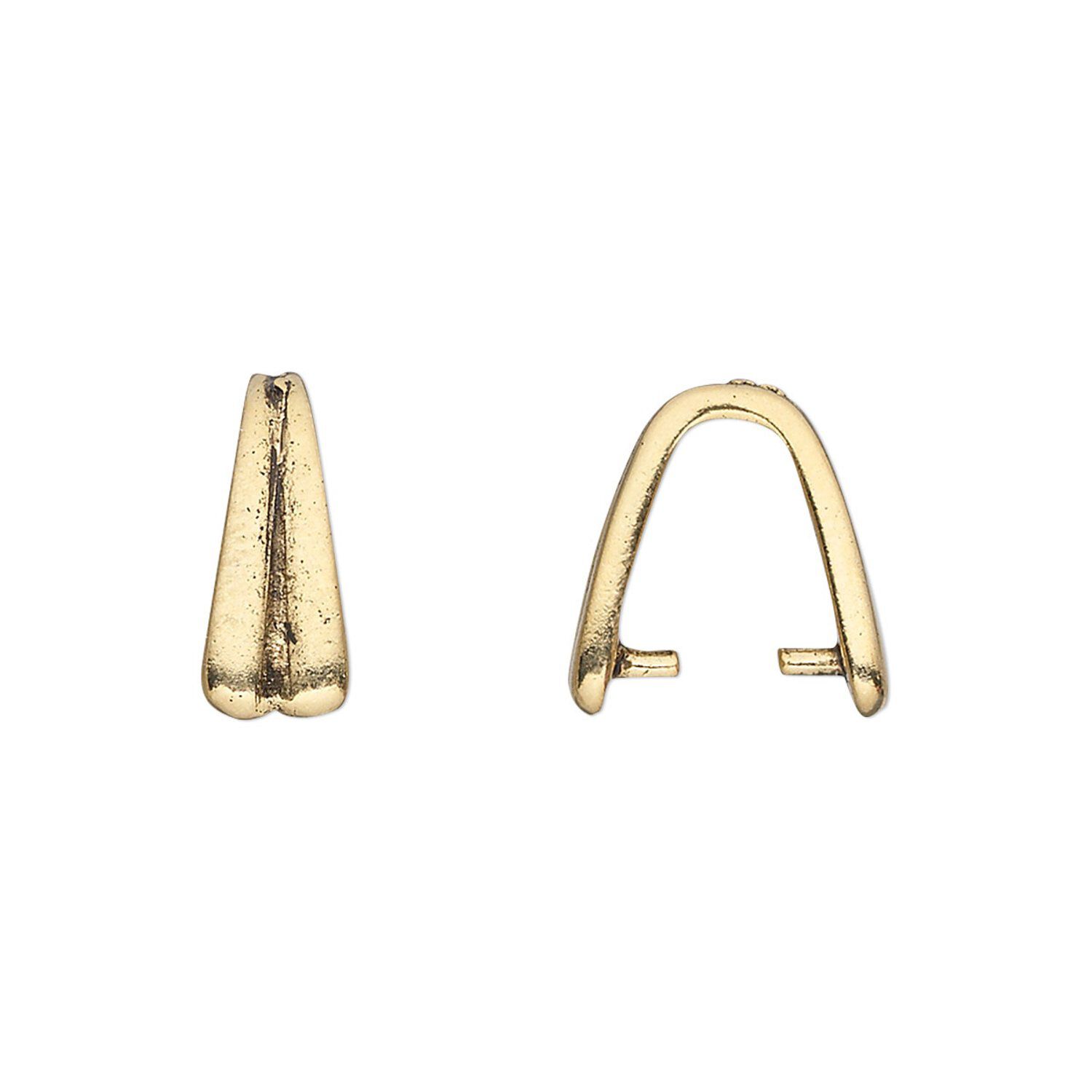 Bail, ice-pick, antique gold-plated pewter (tin-based alloy), 14x6mm, 9mm grip length. Sold per pkg of 4.