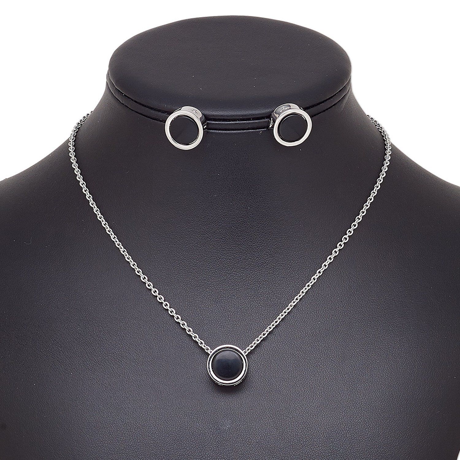 Stylish necklace and earring combo add eye-catching highlights to most apparel. Comfort clutch and rubber earnuts included.