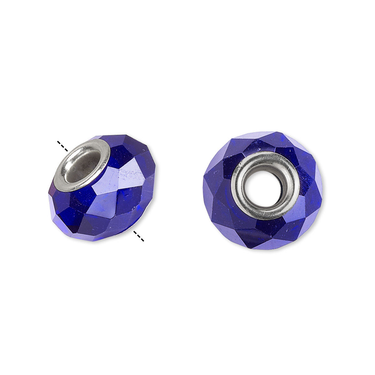 Bead 10pk 32 facets cobalt blue silver plate, Celestial Crystal® Dione® 14x9mm rondelle