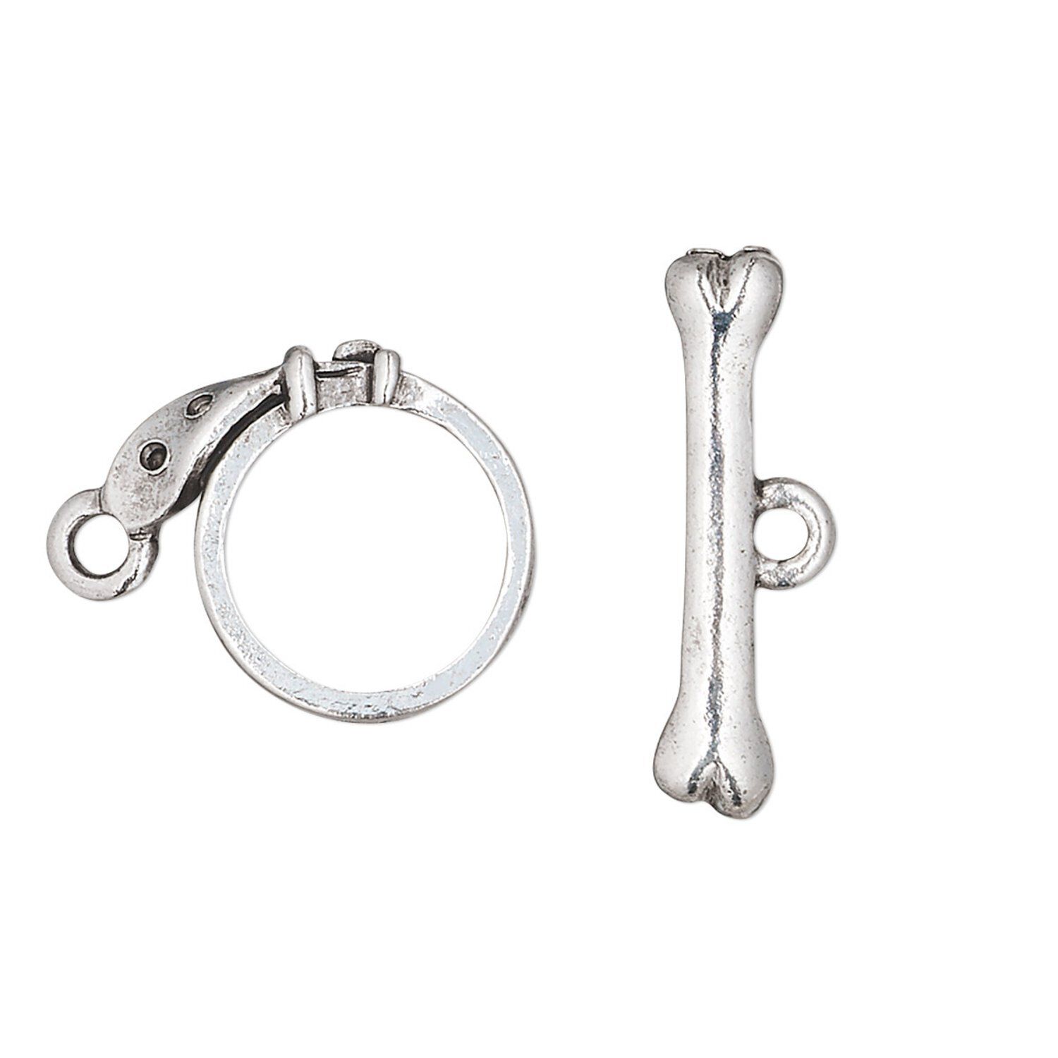 Bone and collar clasps finish dog-themed designs with style. Pewter (tin-based alloy) clasps have an antique plating.