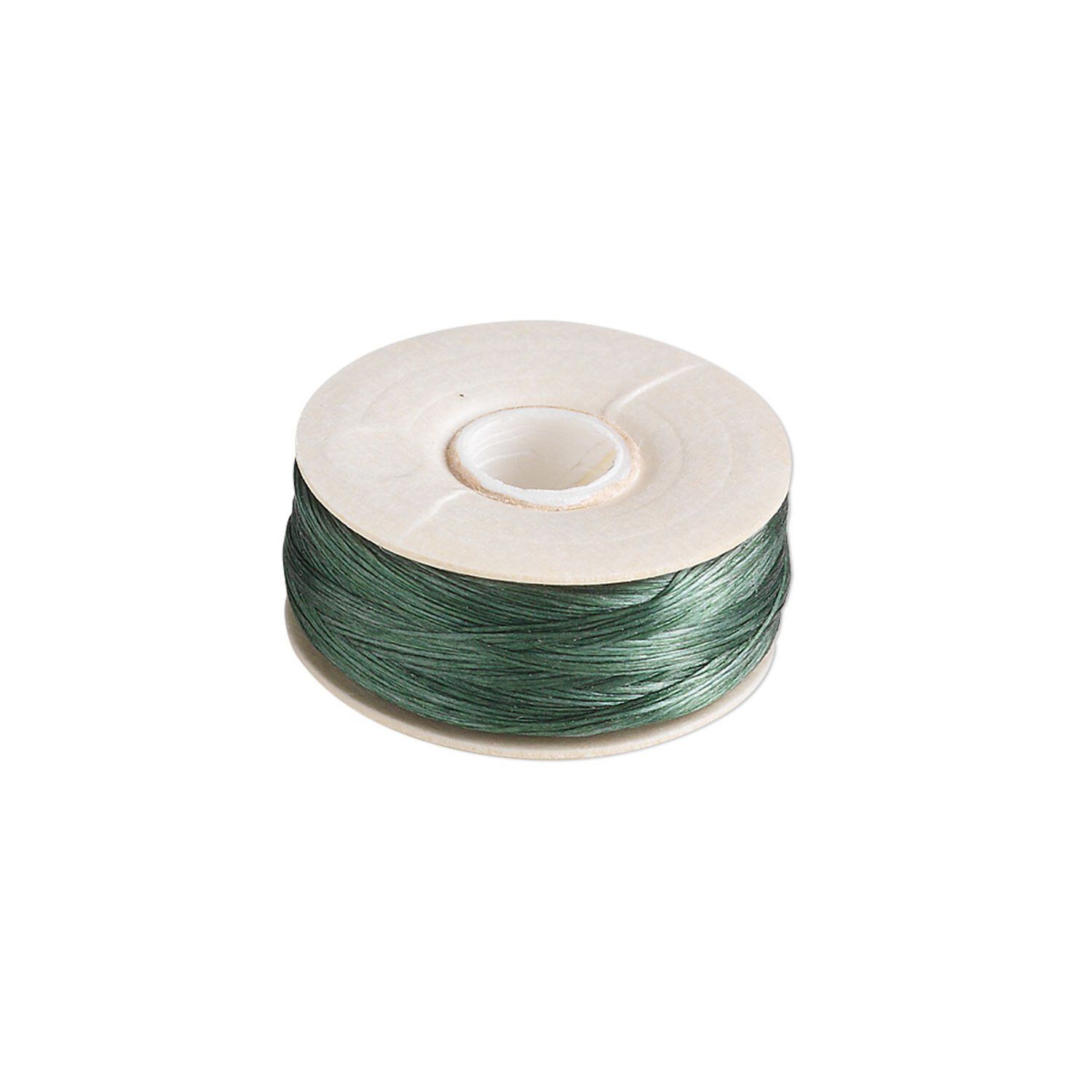Thread, Nymo®, nylon, green, size OO. Sold per 110-yard bobbin.