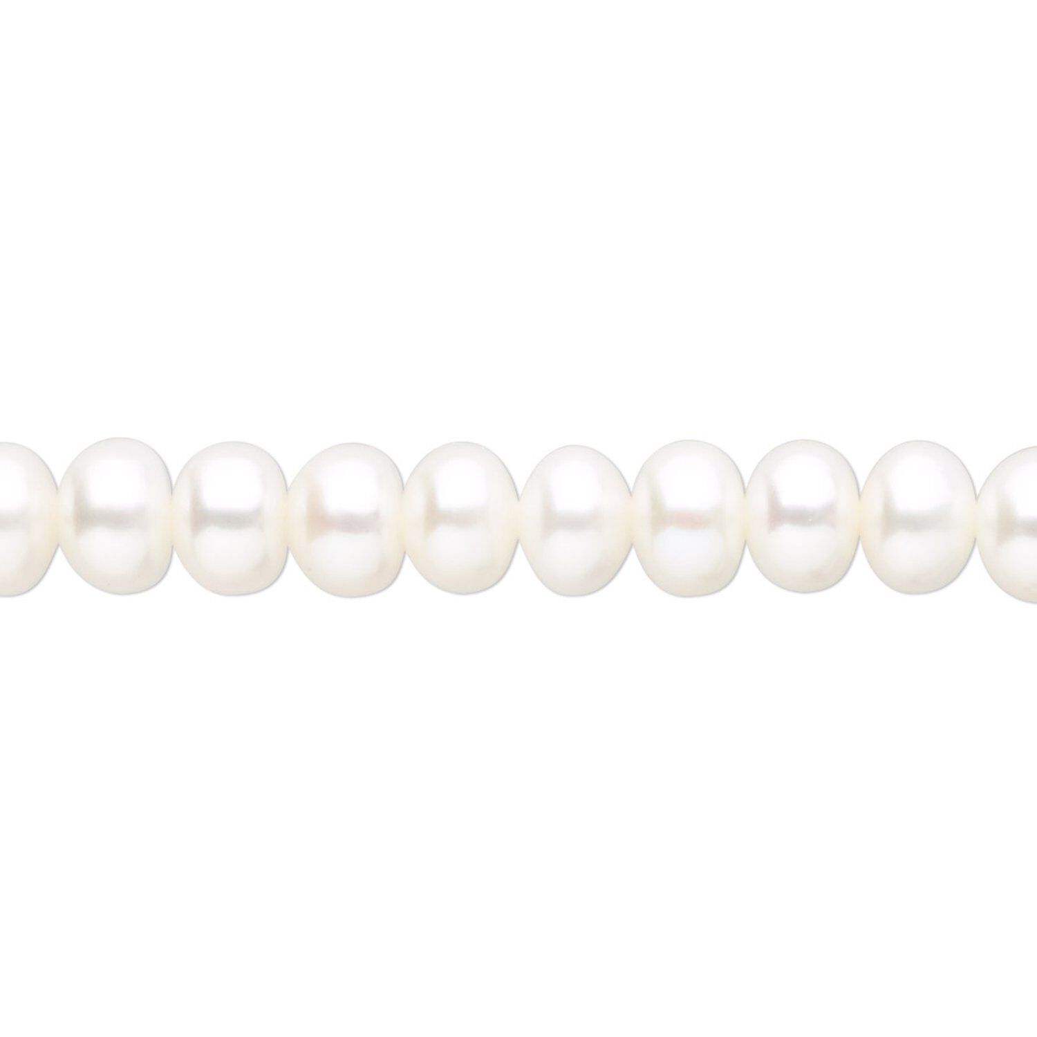 Pearl, cultured freshwater (bleached), white, 6-6.5mm button, B grade, Mohs hardness 2-1/2 to 4. Sold per 16-inch strand.