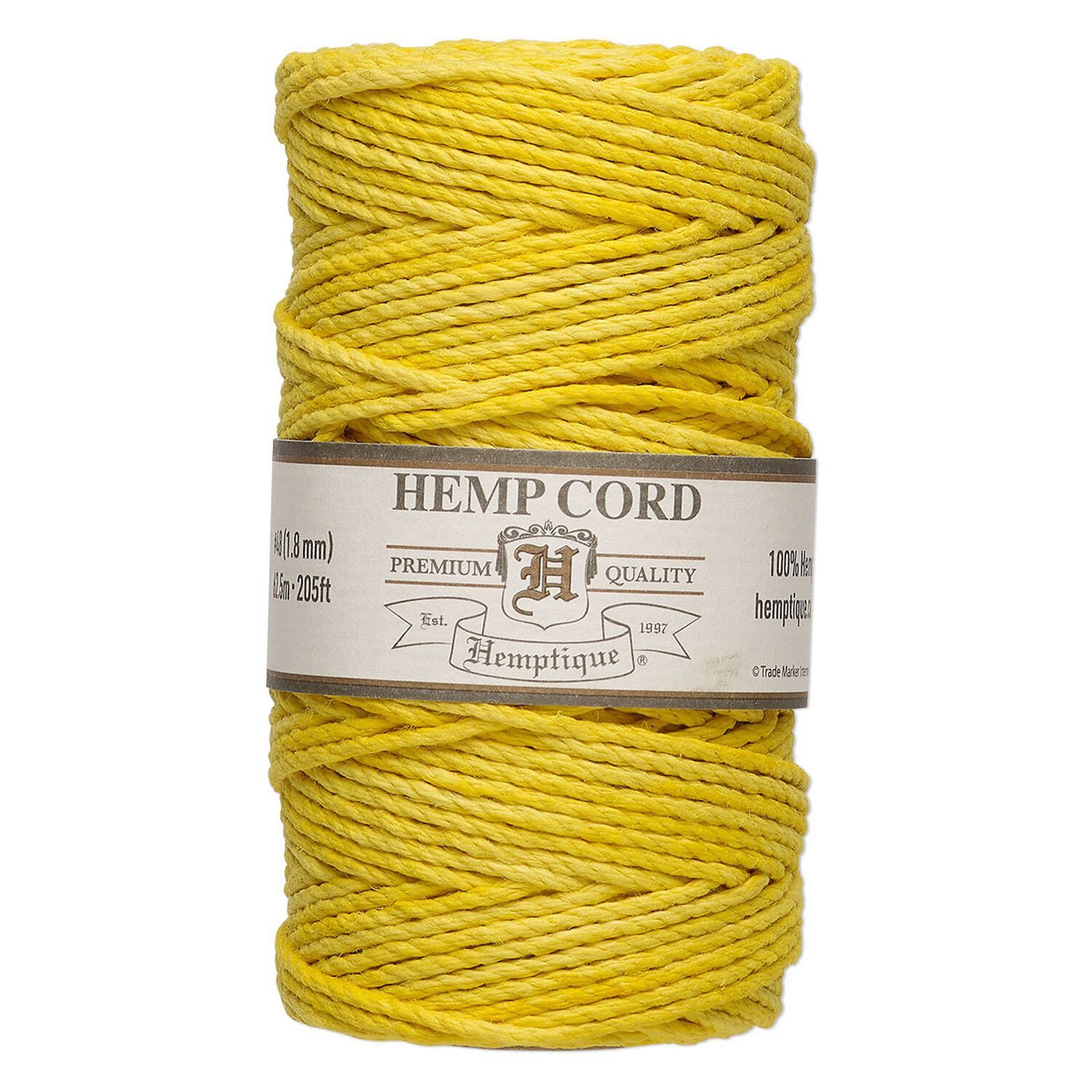 Cord, Hemptique®, polished hemp, yellow, 1.8mm, 48-pound test. Sold per 205-foot spool.