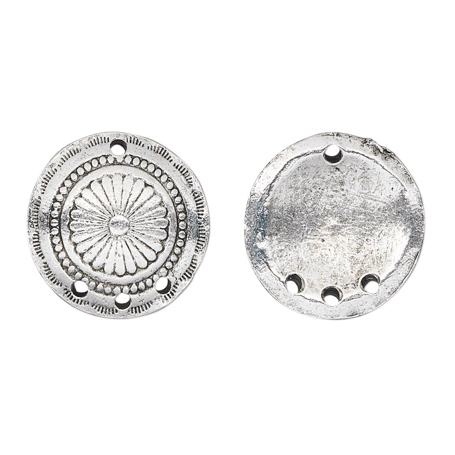 Drop, antique silver-plated pewter (tin-based alloy), 18mm concho disc with flower. Sold per pkg of 2.