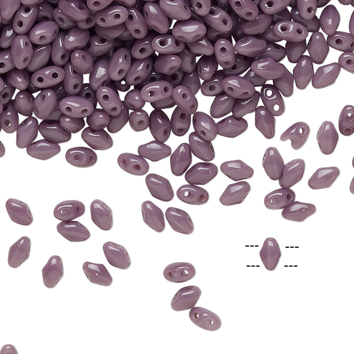 Bead, Preciosa Mini Twin™, Mini Pressed Twin, Czech pressed glass, opaque purple, 4x2.5mm oval with (2) 0.7mm holes. Sold per 10-gram pkg.