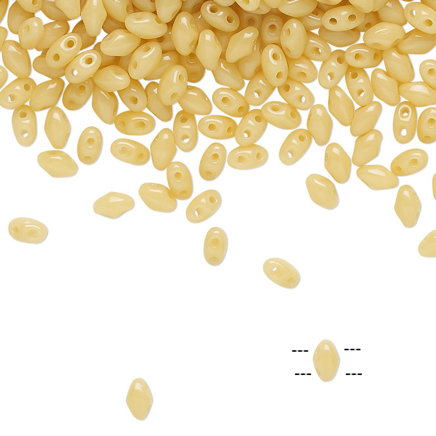 Bead, Preciosa Mini Twin™, Mini Pressed Twin, Czech pressed glass, opaque tan, 4x2.5mm oval with (2) 0.7mm holes. Sold per 250-gram pkg.