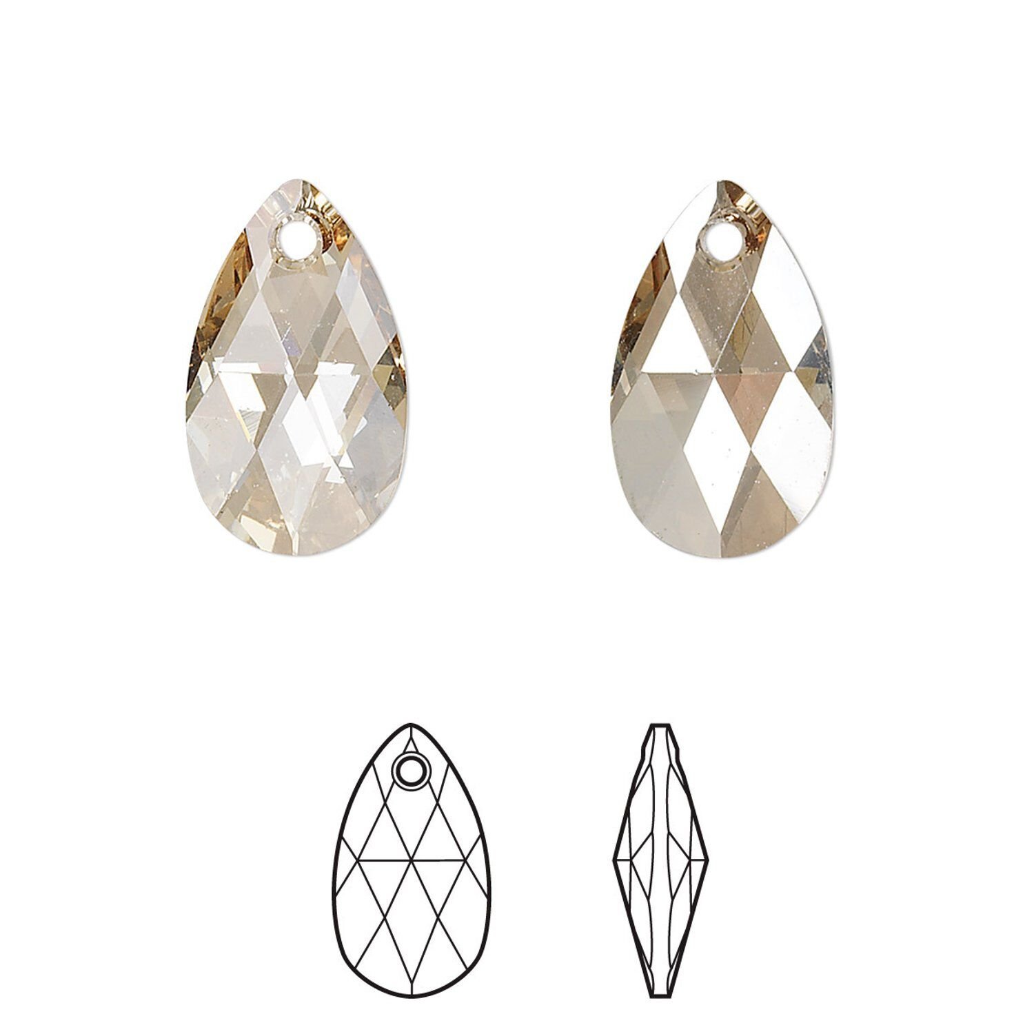 The pear shape has been one of the most sought-after crystal creations for its precision-cut facets, uniform color and beveled drill hole. The pear pendant is no different as Swarovski® continues to expand the design possibilities of this shape. Hole size and placement may vary slightly.