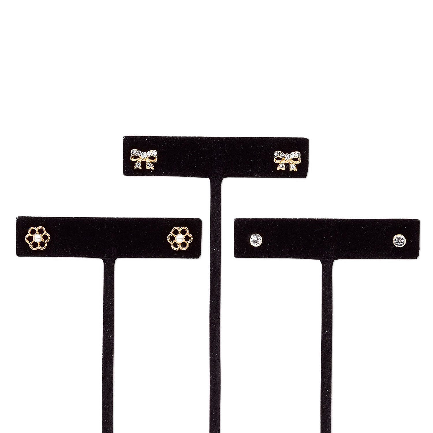 Earring, acrylic pearl / glass rhinestone / stainless steel / gold-finished steel / "pewter" (zinc-based alloy), clear and white, 4mm round / 9x9mm flower / 10x7mm bow with post. Sold per pkg of 3 pairs.