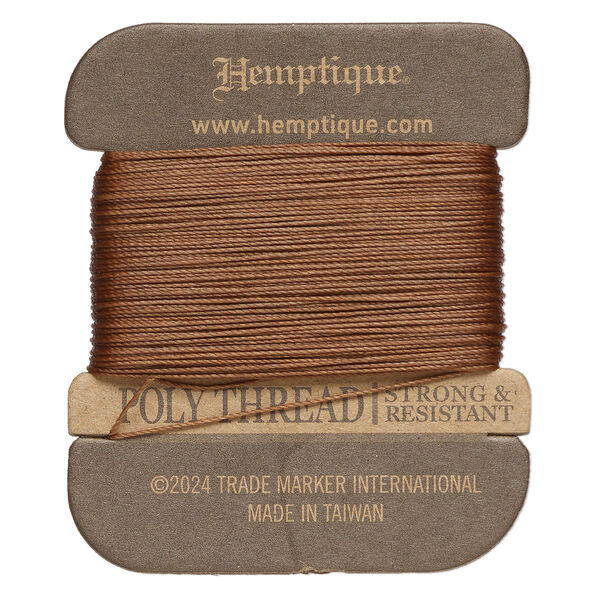 Thread, Hemptique®, polyester, pkg/32 yards, dark brown, 0.45mm 3-ply round.
