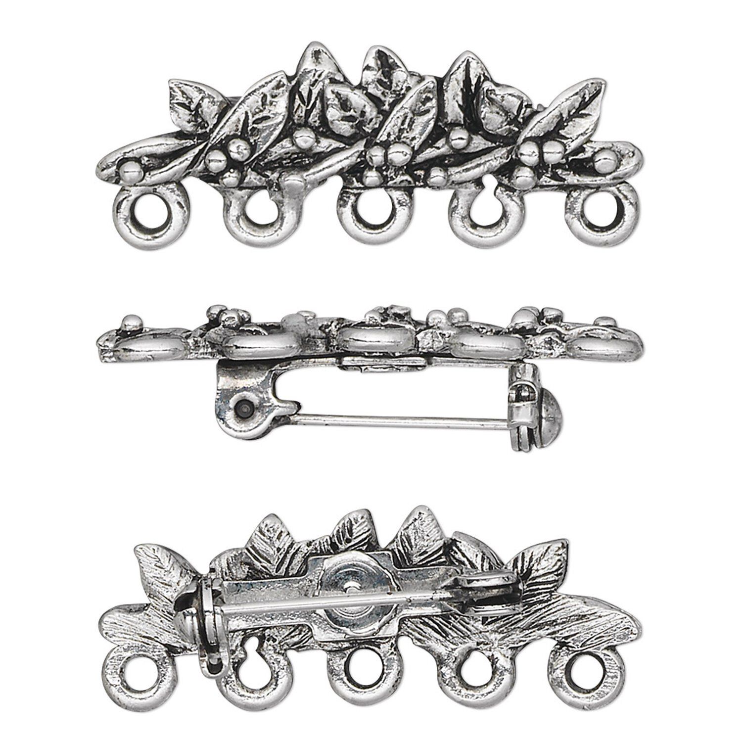 The decorative brooch has five loops for attaching beads, dangles, fringe and more to create a personalized accessory that can be worn on coats, sweaters or hats.