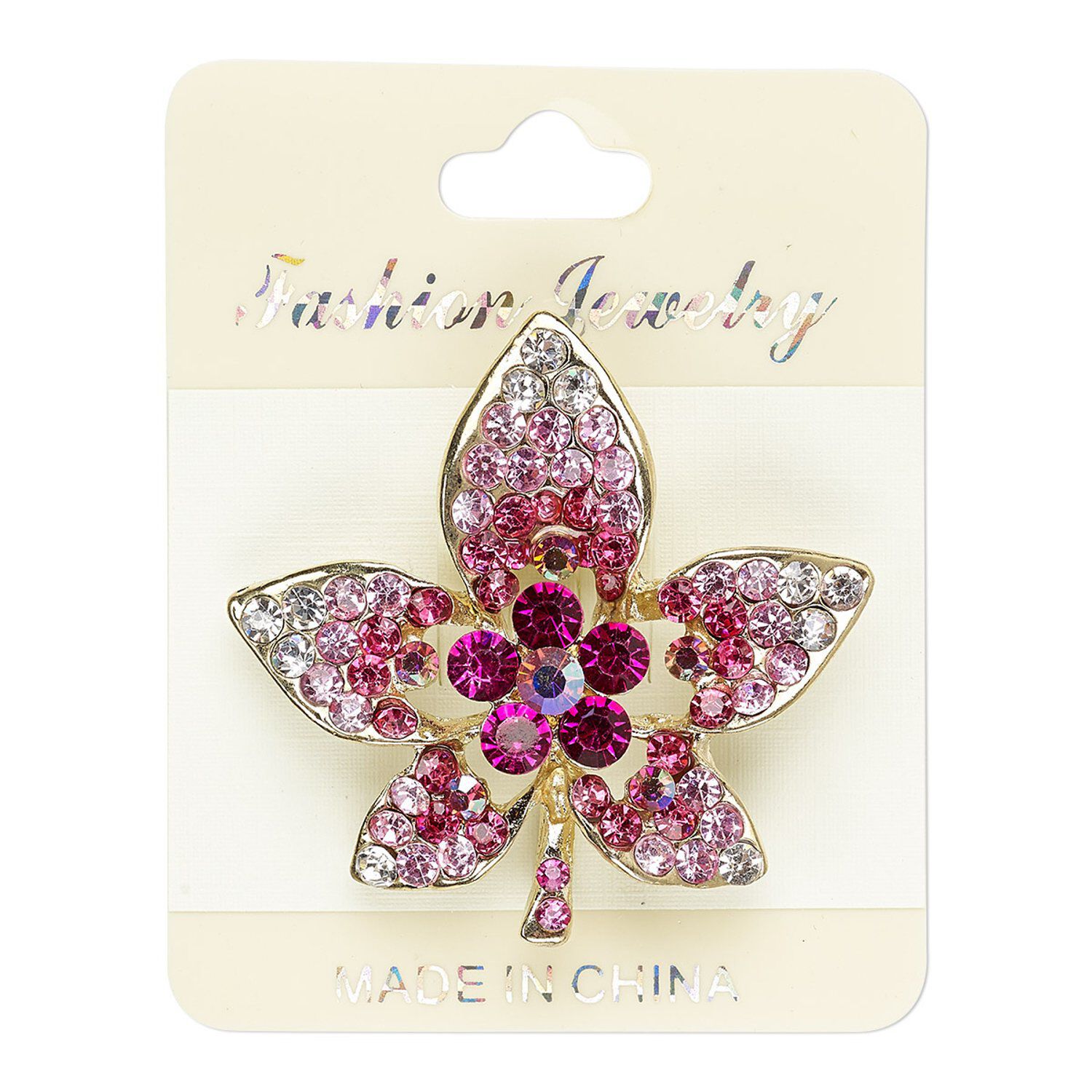 Oh, Canada! "Pewter" (zinc-based alloy) maple leaf brooch features crisp details due to a quality casting process, accented with sparkling glass rhinestones. Rhinestones can contain AB finish. Colors, shapes and sizes may vary in each lot.