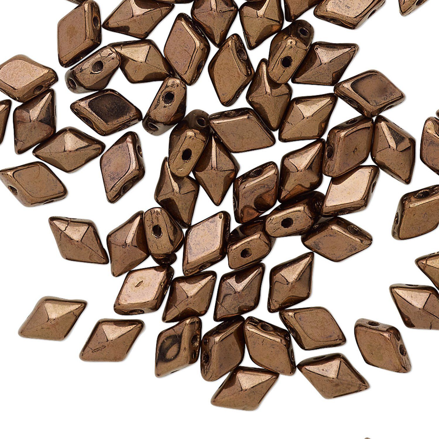 DiamonDuo™ Czech pressed glass beads get their name from the classic two-point diamond shape. The faceted front provides extra dimension and play of light. The two stringing holes positioned on each elongated diamond point offer plenty of design possibilities such as bead weaving, stringing projects and more.