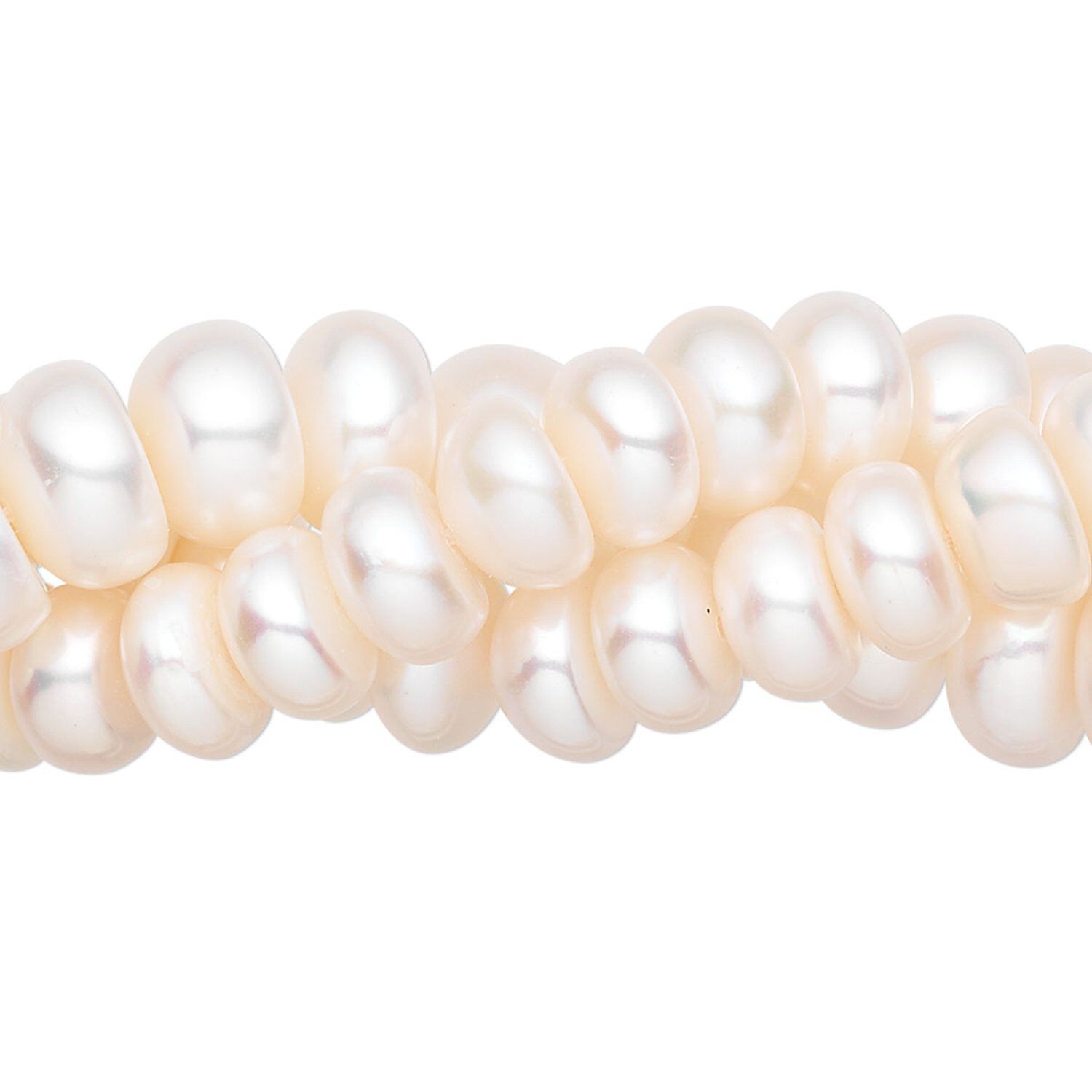 Pearl, cultured freshwater (bleached), white, 8-9mm button, B- grade, Mohs hardness 2-1/2 to 4. Sold per pkg of (3) 14-inch strands.