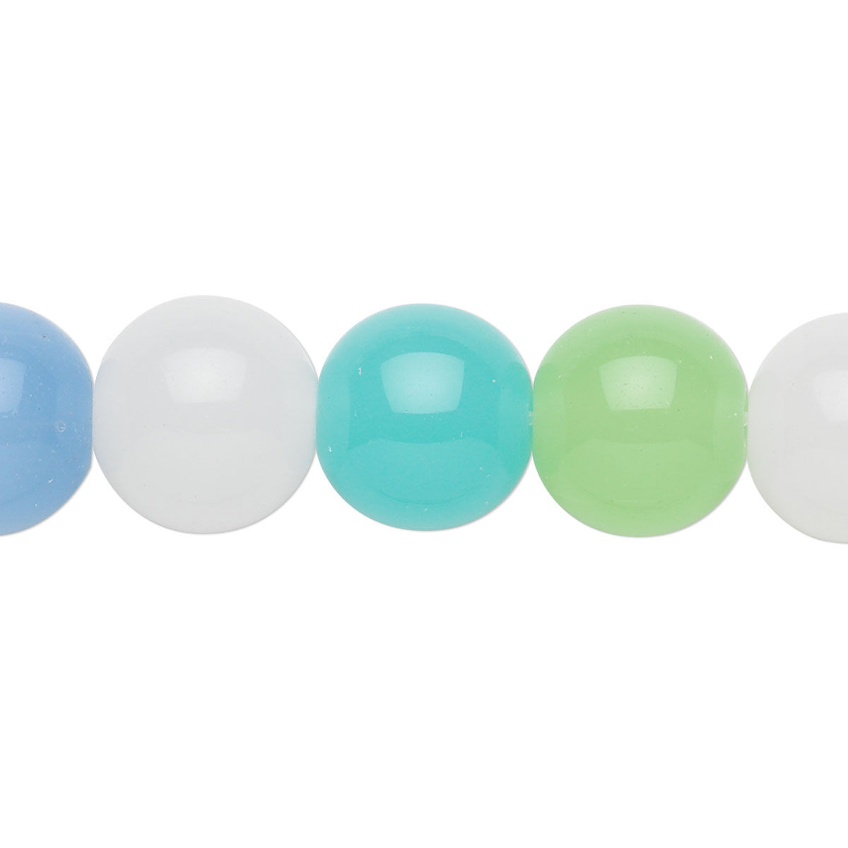 Glass beads with pastel colors make for eye-catching jewelry that's affordable. Strung on 36-inch monofilament string, beads can be worn as is or used as beading components. Colors include pastel white, pink, green, aqua and blue. Color and shape may vary slightly.