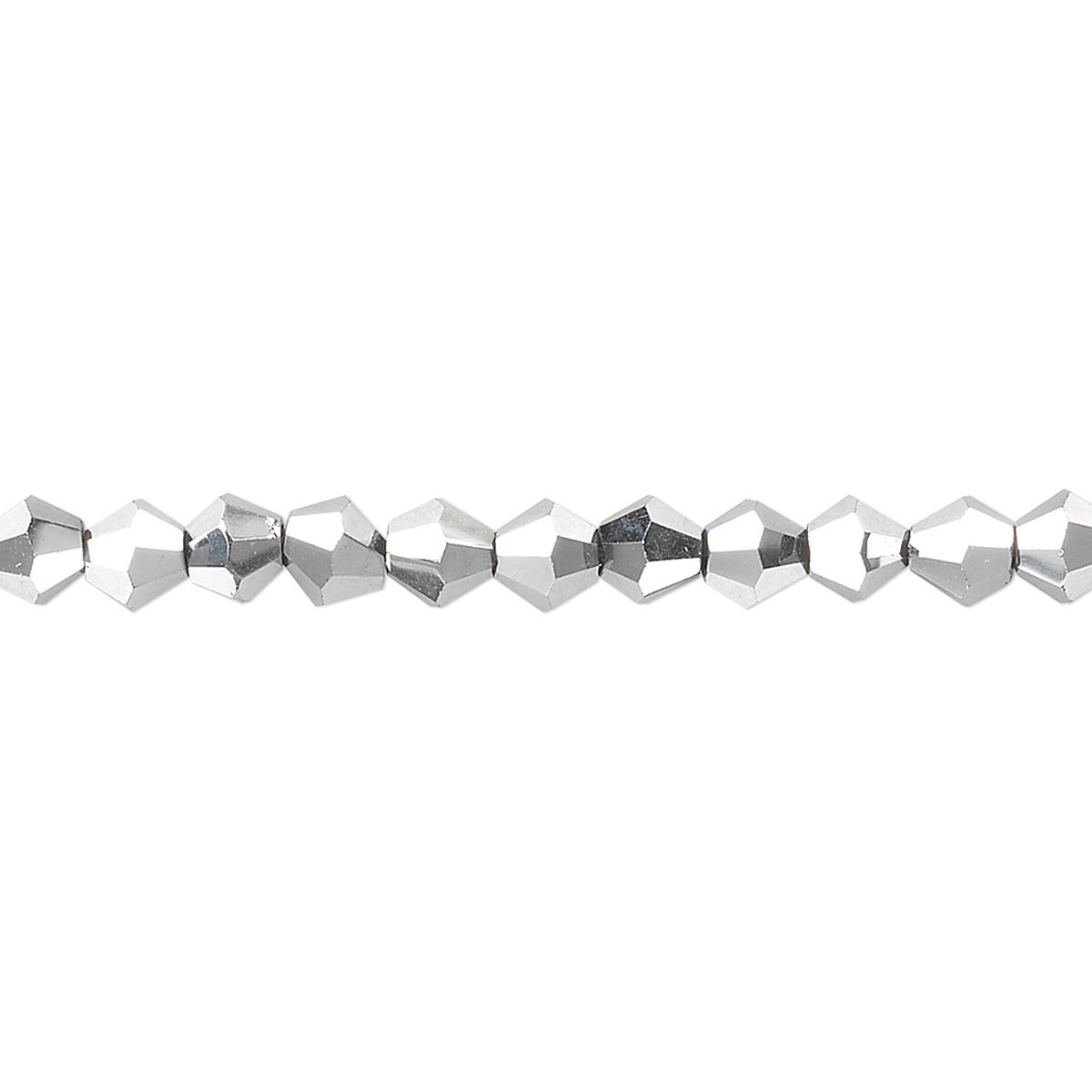 Bead, glass, metallic silver, 4mm bicone. Sold per 15-1/2" to 16" strand.