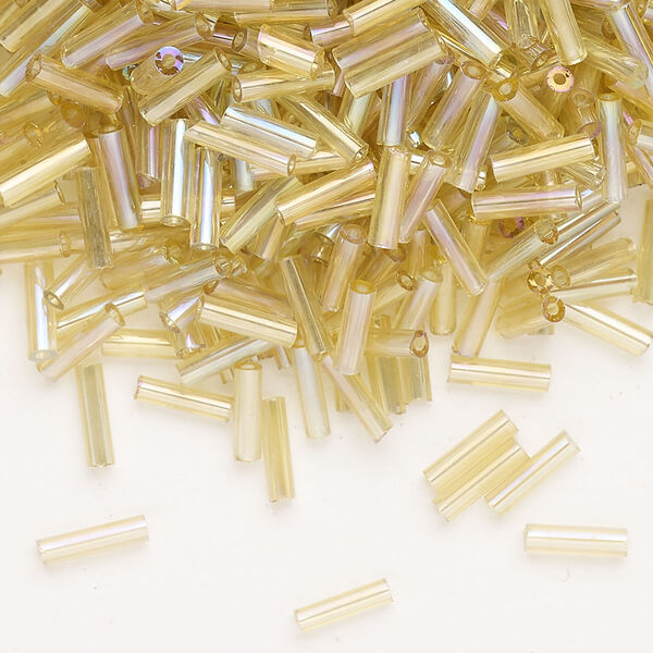 Bead, Ming Tree™, bugle bead, glass, pkg/1/4 pound, 1/4 inch, rainbow transparent tan.