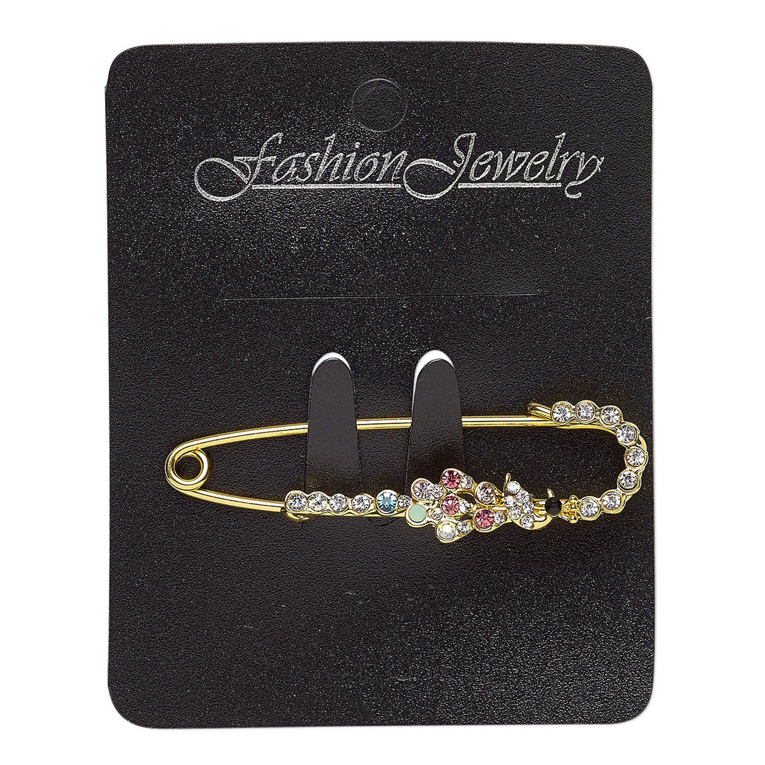 This stylish brooch features a safety pin design with a peacock, and glass rhinestone embellishments. Brooch is great for resale or a gift.