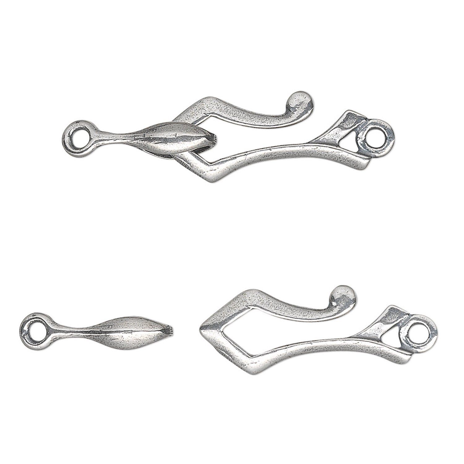 Clasp hook&eye 1pkg1 sterling silver, 19x9mm gothic, antiqued JBB Findings 1-strand
