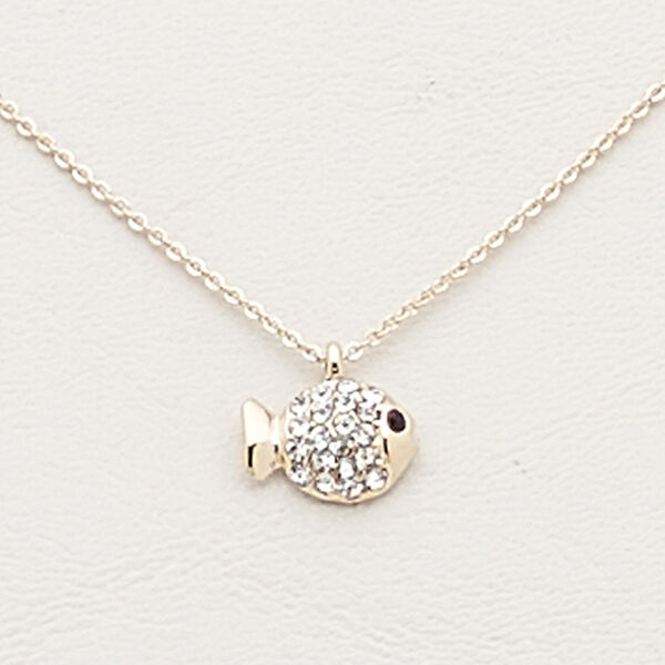 Chain necklace features a fish pendant set with sparkling Czech glass rhinestones. Extender chain and lobster claw clasp closure offers adjustable style, too, suiting a range of neck sizes. Colors, shapes and sizes may vary in each lot.
