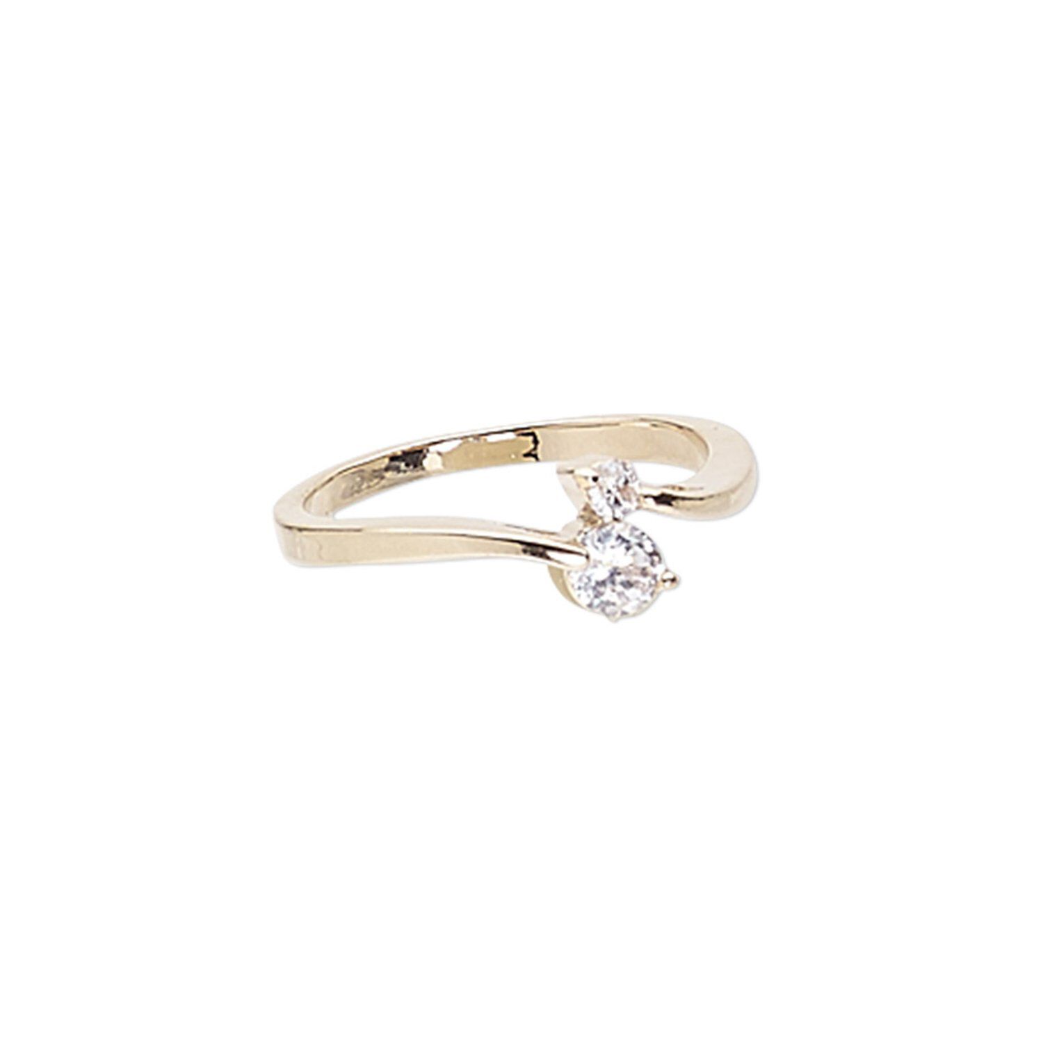 Ring, Czech glass rhinestone and gold-finished "pewter" (zinc-based alloy), clear, 7mm wide, size 7. Sold individually.