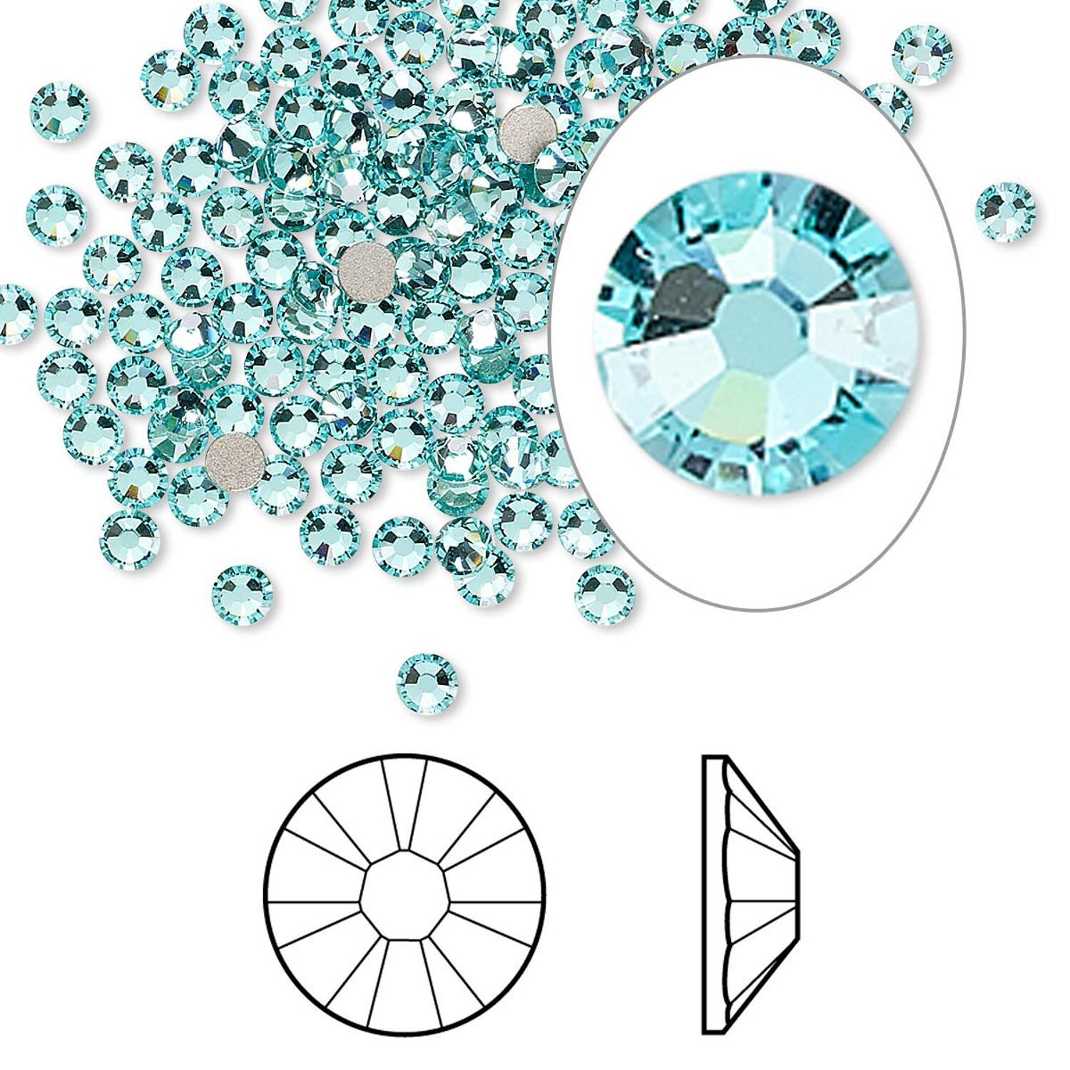 Flat back 144pk light turquoise foil back, Crystal Passions® 2.5-2.7mm rose round SS9 2058