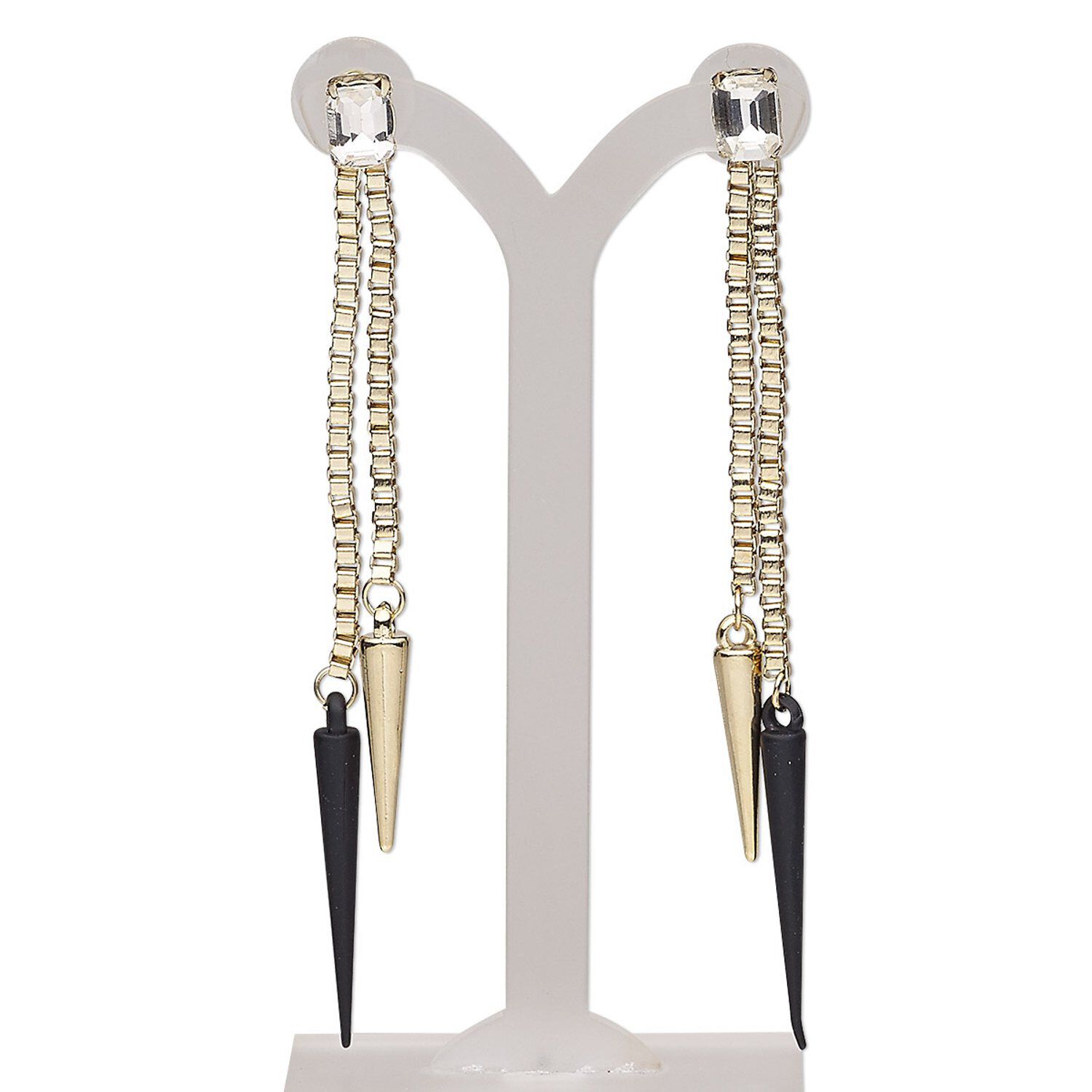 Earring, glass / stainless steel / gold-finished steel / "pewter" (zinc-based alloy) / painted "pewter" (zinc-based alloy), clear and matte black, 4 inches with spike and post. Sold per pair.