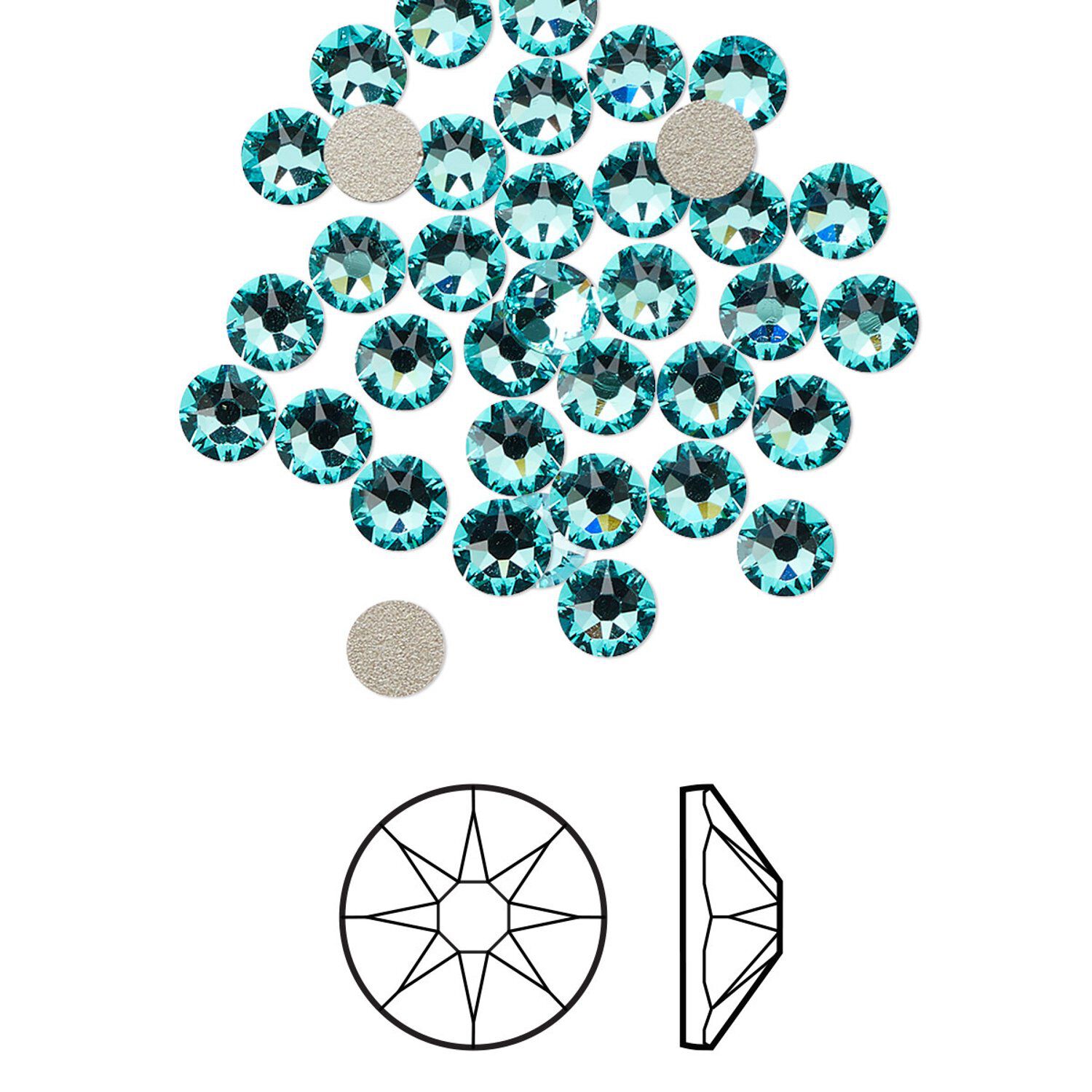 Flat back 1440pk light turquoise foil back, Swarovski® 3.8-4mm rose round SS16 2088
