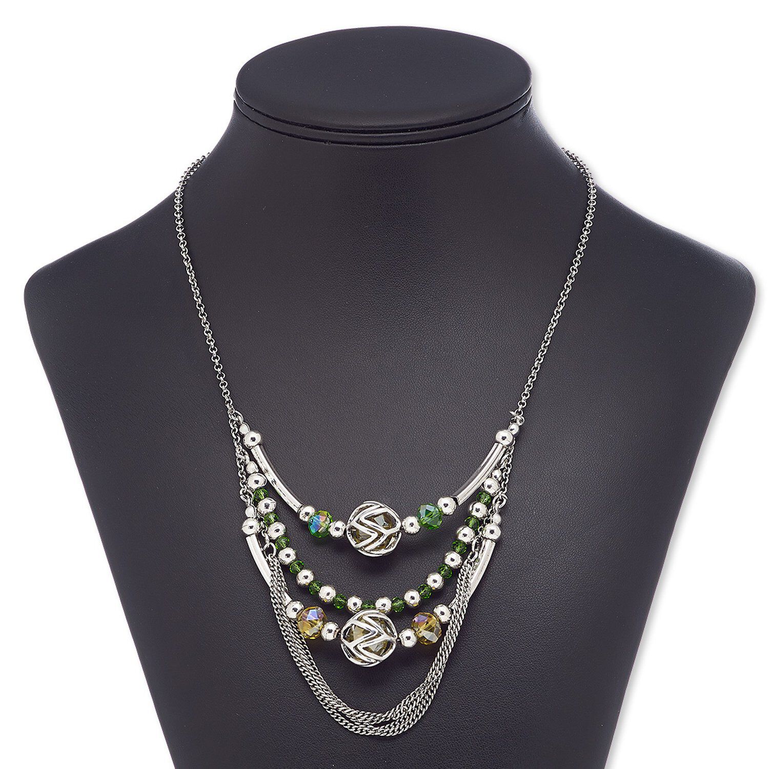 Ready-to-wear jewelry is great for counter sales or giving as a gift. Antiqued silver-finished brass, steel and "pewter" (zinc-based alloy) necklace features multiple strands and a variety of embellishments.