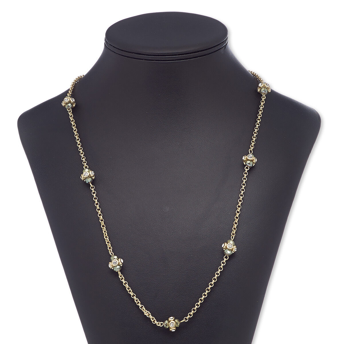 Ready-to-wear jewelry is great for counter sales or giving as a gift. Gold-finished steel necklace features faceted glass beads and is great for many occasions.