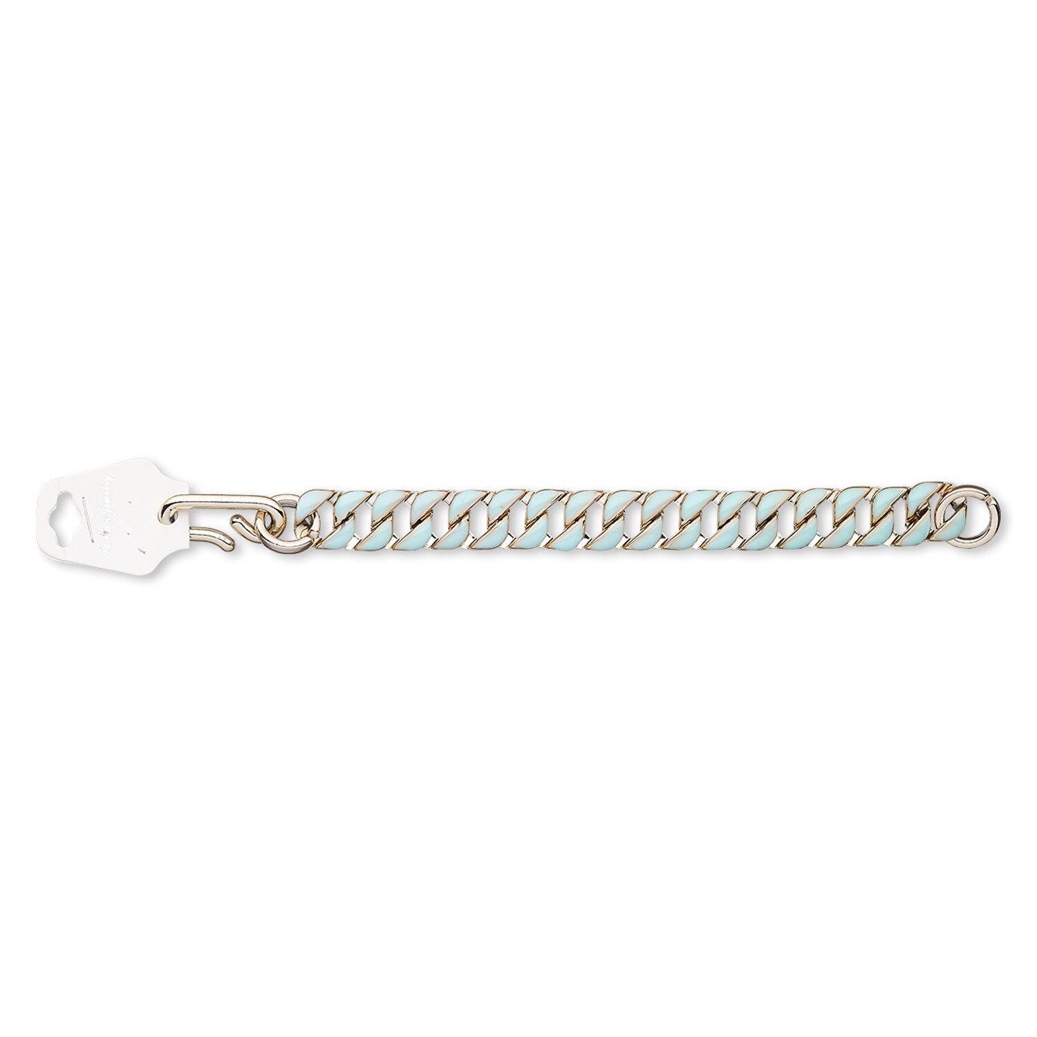 Lightweight bracelet is ready to wear and is constructed of rose gold-colored acrylic chain. Bracelet is accented with turquoise blue enamel. Colors, shapes and sizes may vary in each lot.