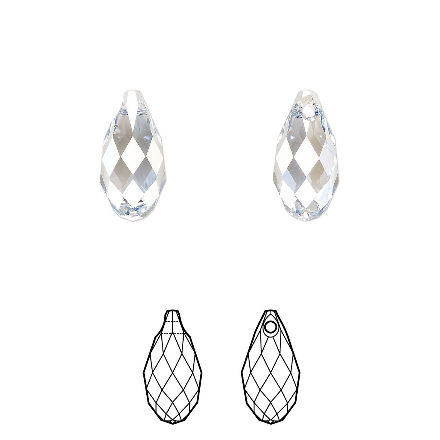 Radiate elegance in jewelry and accessories with Swarovski® briolette drops. The elongated, pear-shaped crystals are top-drilled and dangle from chain with sophistication. Hole size and placement may vary slightly.