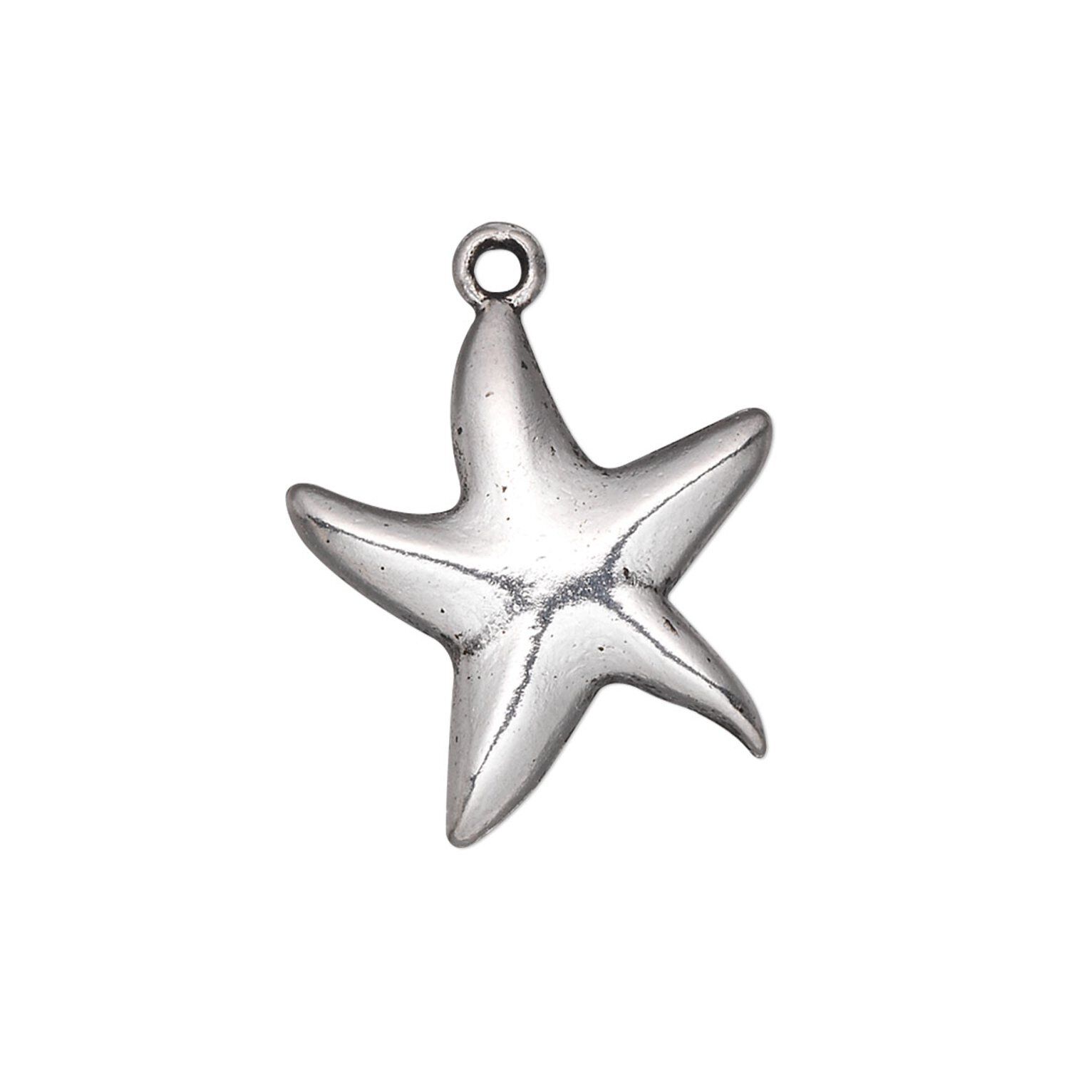 Charm, antique silver-plated "pewter" (zinc-based alloy), 20x20mm single-sided starfish. Sold per pkg of 10.