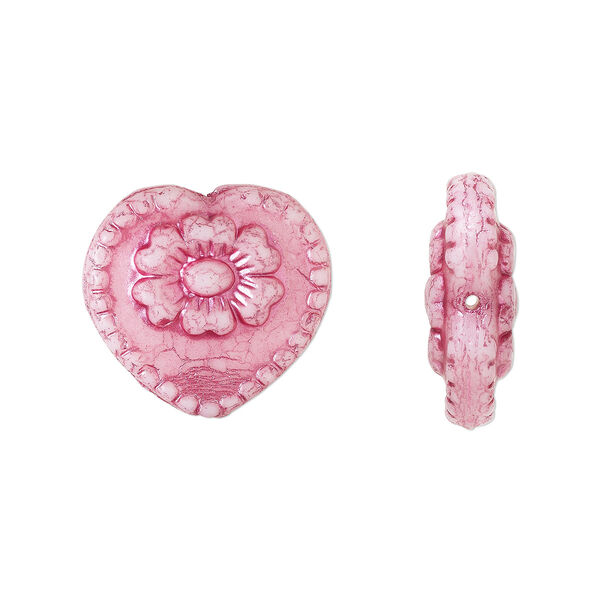 Bead, Preciosa Czech pressed glass, opaque alabaster, dark pink finish, 18x17mm heart. Sold per pkg of 5.