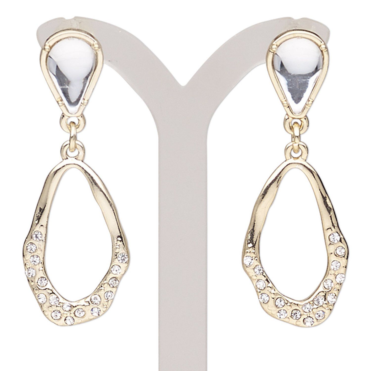 Earring, resin / glass rhinestone / gold-finished steel / "pewter" (zinc-based alloy), clear, 1-1/2 inches with freeform and post. Sold per pair.