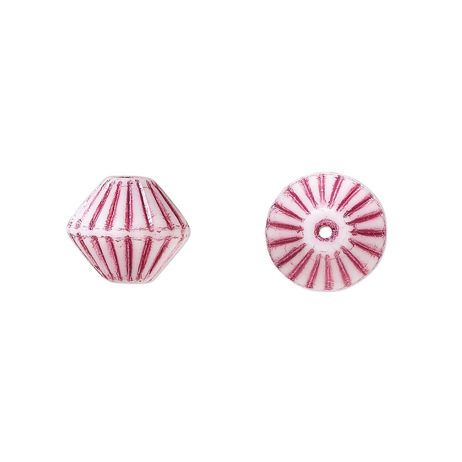 Bead, Preciosa, Czech pressed glass, opaque white violet, 11mm fluted bicone. Sold per pkg of 12.