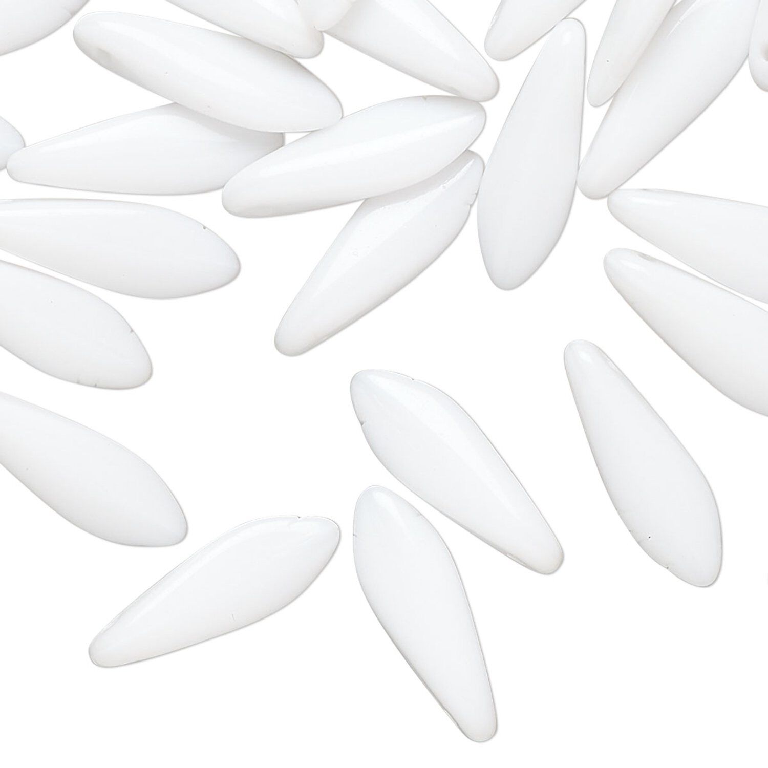 Bead 1pkg50 Czech pressed glass, opaque white, 15.5x5mm top-drilled dagger.