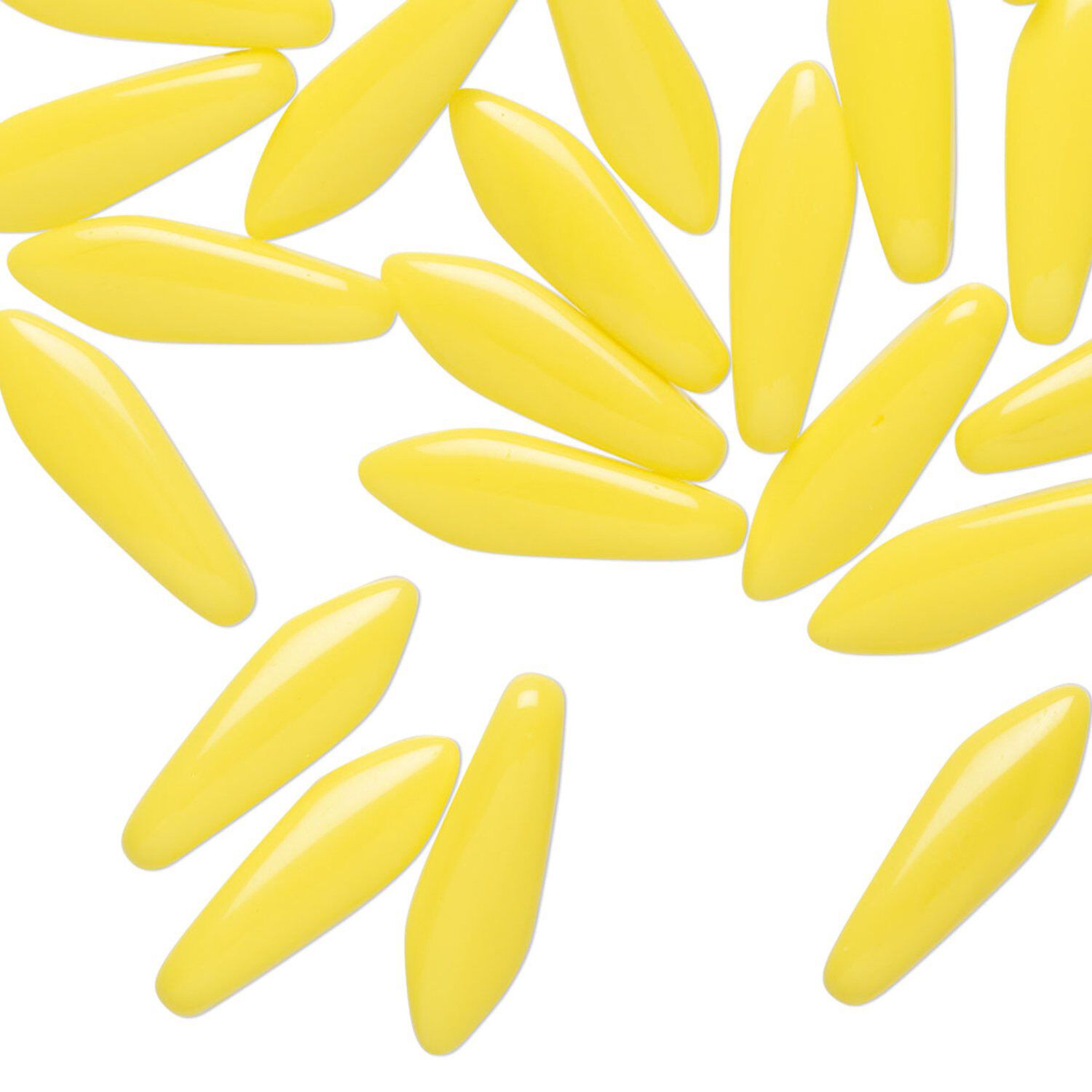 Bead 1pkg50 Czech pressed glass, opaque yellow, 15.5x5mm top-drilled dagger.