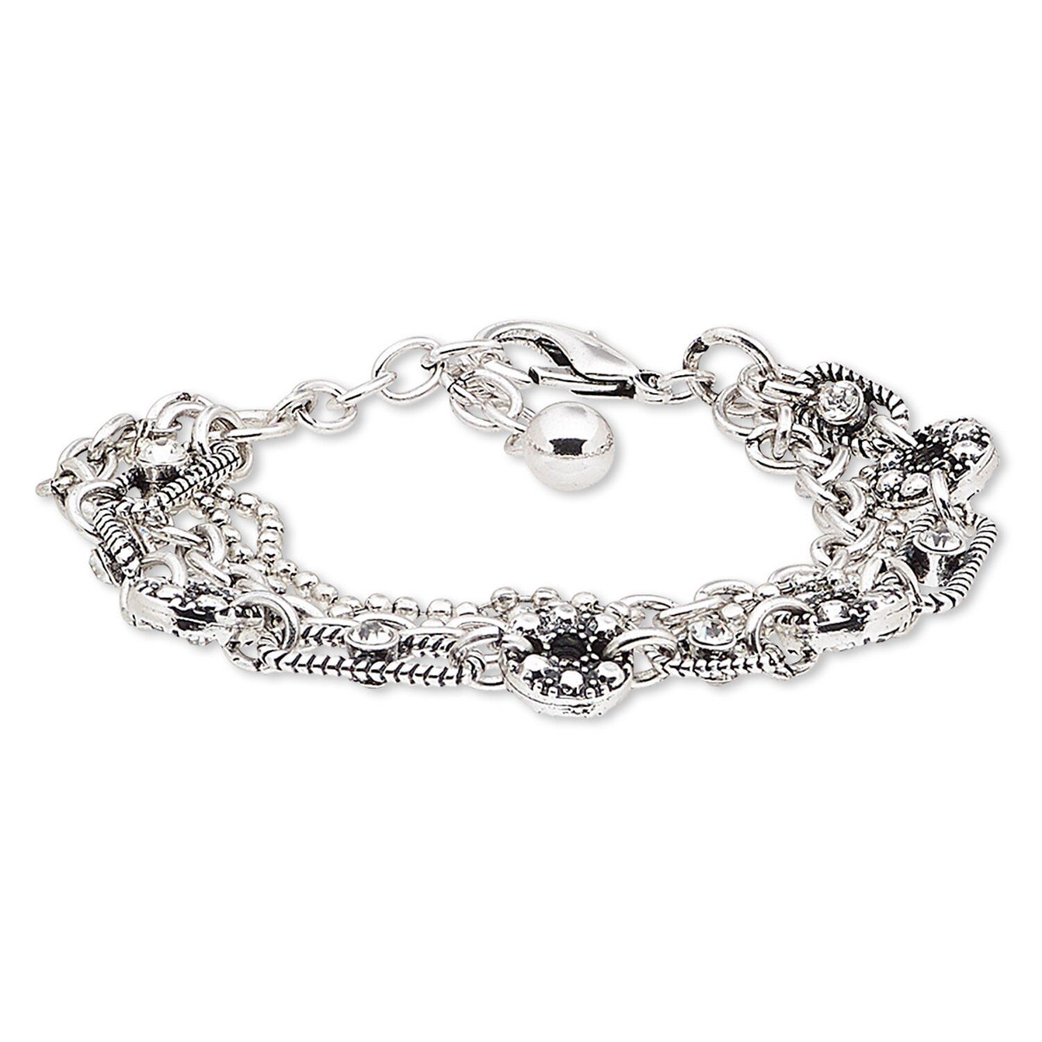 Ready-to-wear jewelry is great for counter sales or as a gift. This silver-plated steel, antique silver-plated brass and "pewter" bracelet features glass rhinestone accents. Colors, shapes and sizes may vary in each lot.