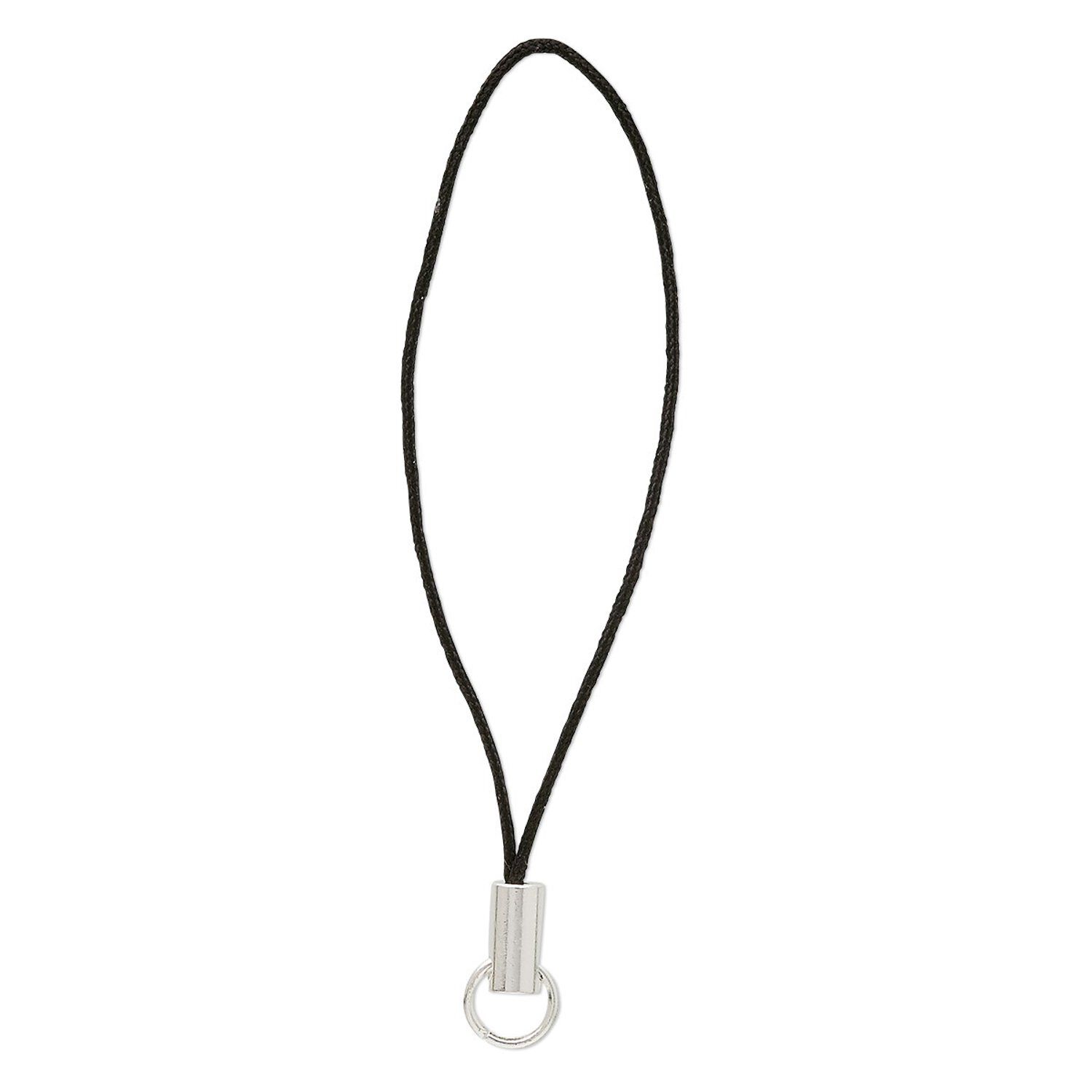 Zipper pull, silver-plated brass and nylon, black, 2-3/4 inches. Sold per pkg of 24.