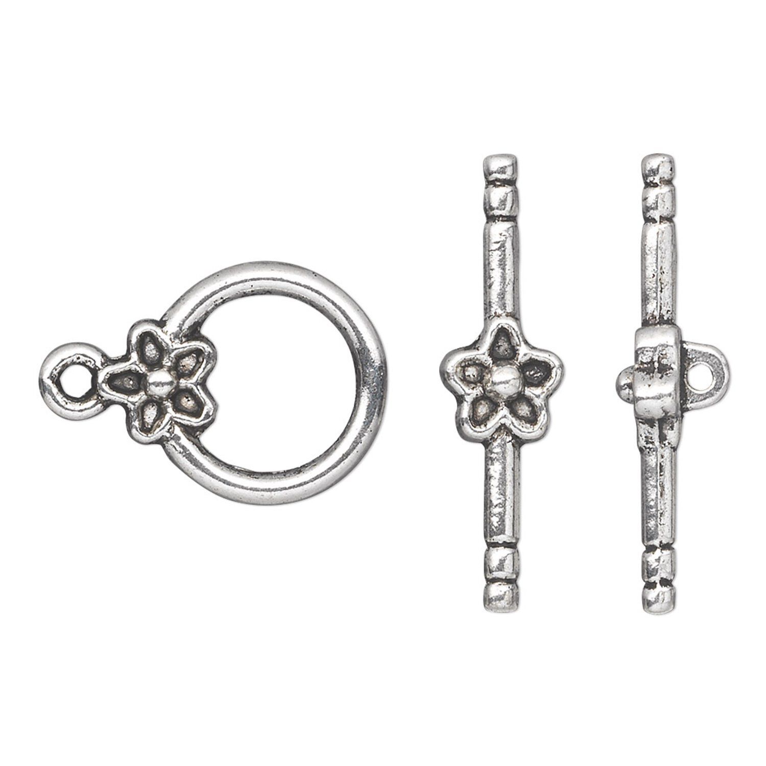 Antique silver-plated toggle clasp in "pewter" (zinc-based alloy) works great as the focal of a necklace or the perfect way to complete a themed design.