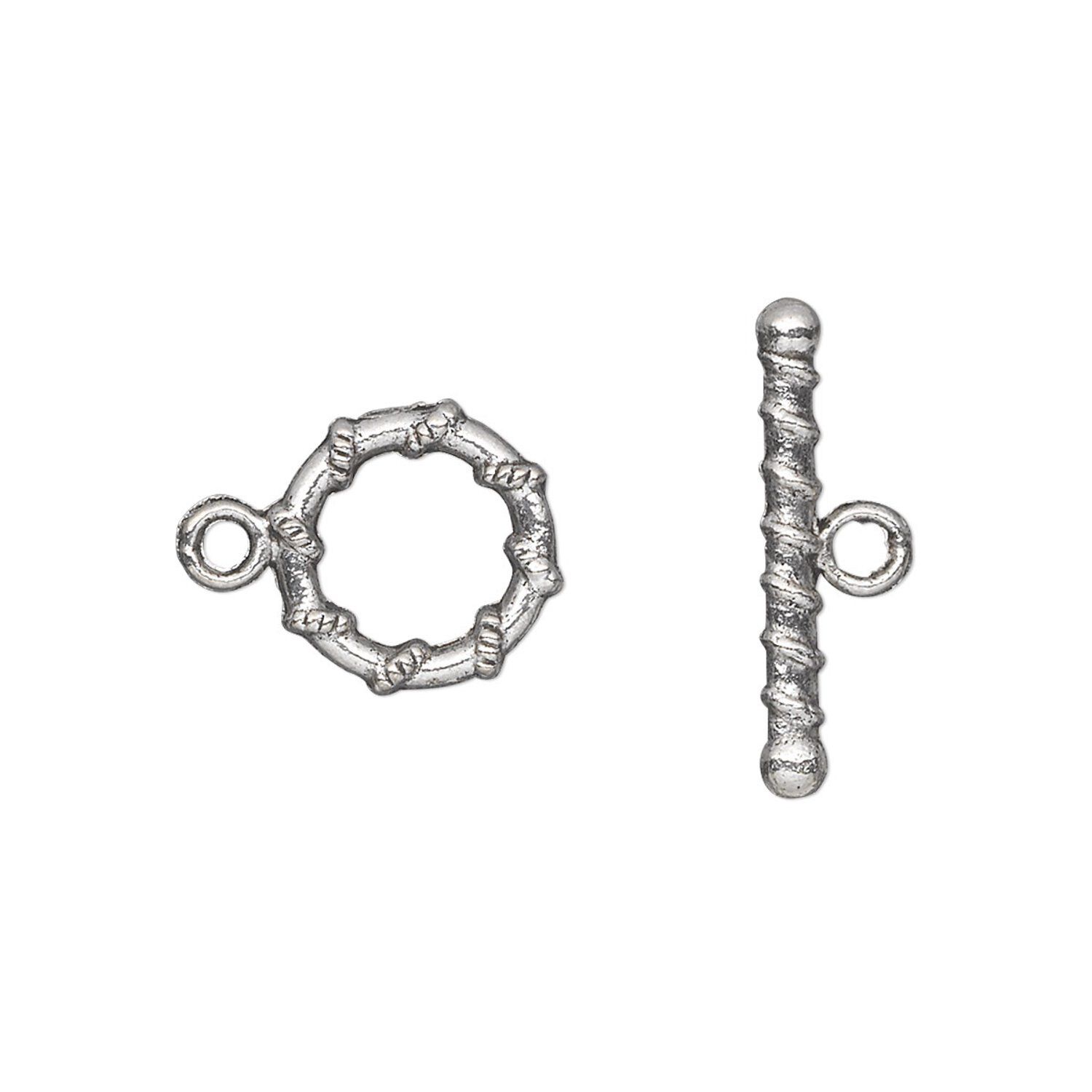 Antique silver-plated toggle clasp in "pewter" (zinc-based alloy) works great as the focal of a necklace or the perfect way to complete a themed design.