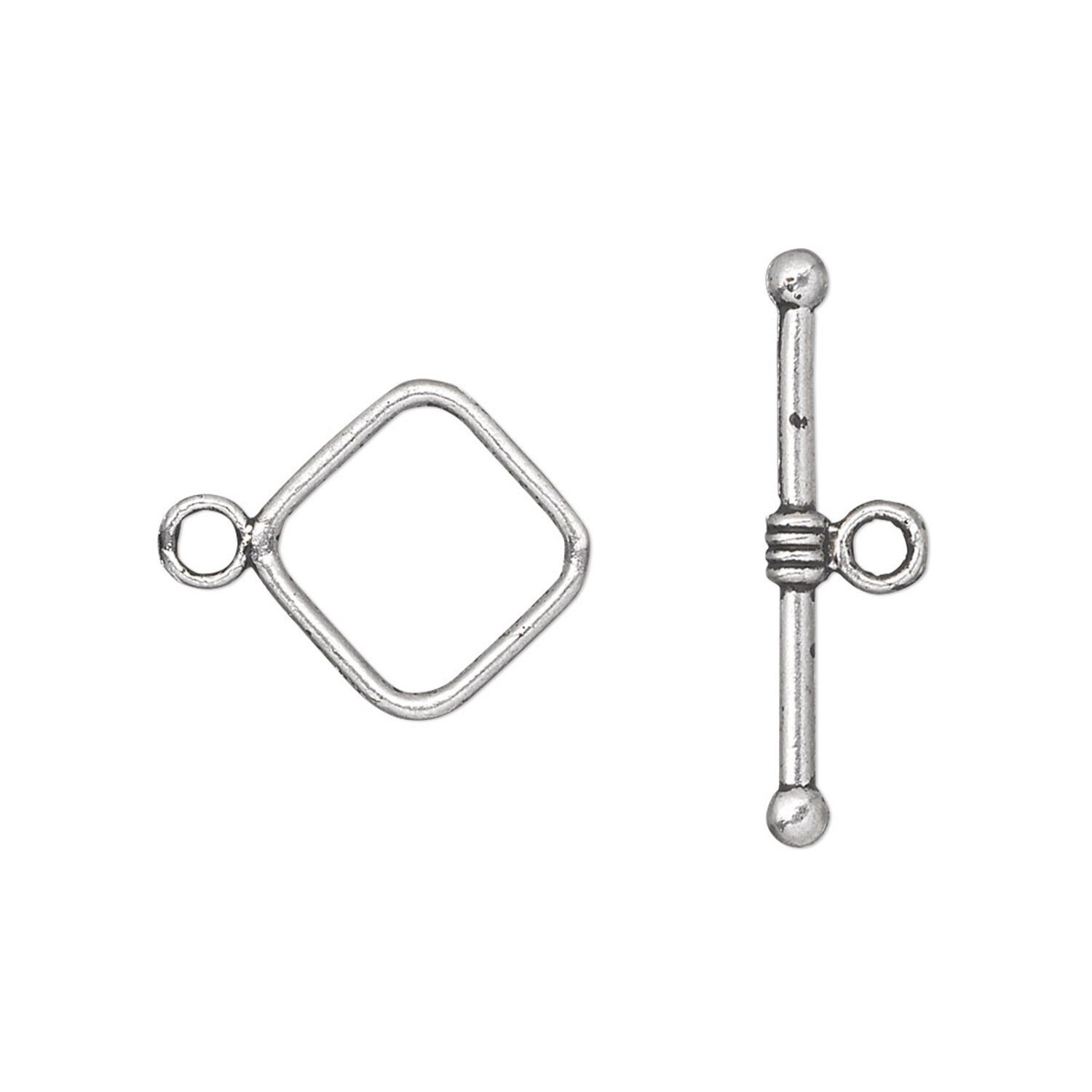 Clasp toggle 1pkg20 silver-plated "pewter" (zinc alloy), 14mm double-sided diamond, antique 1-strand