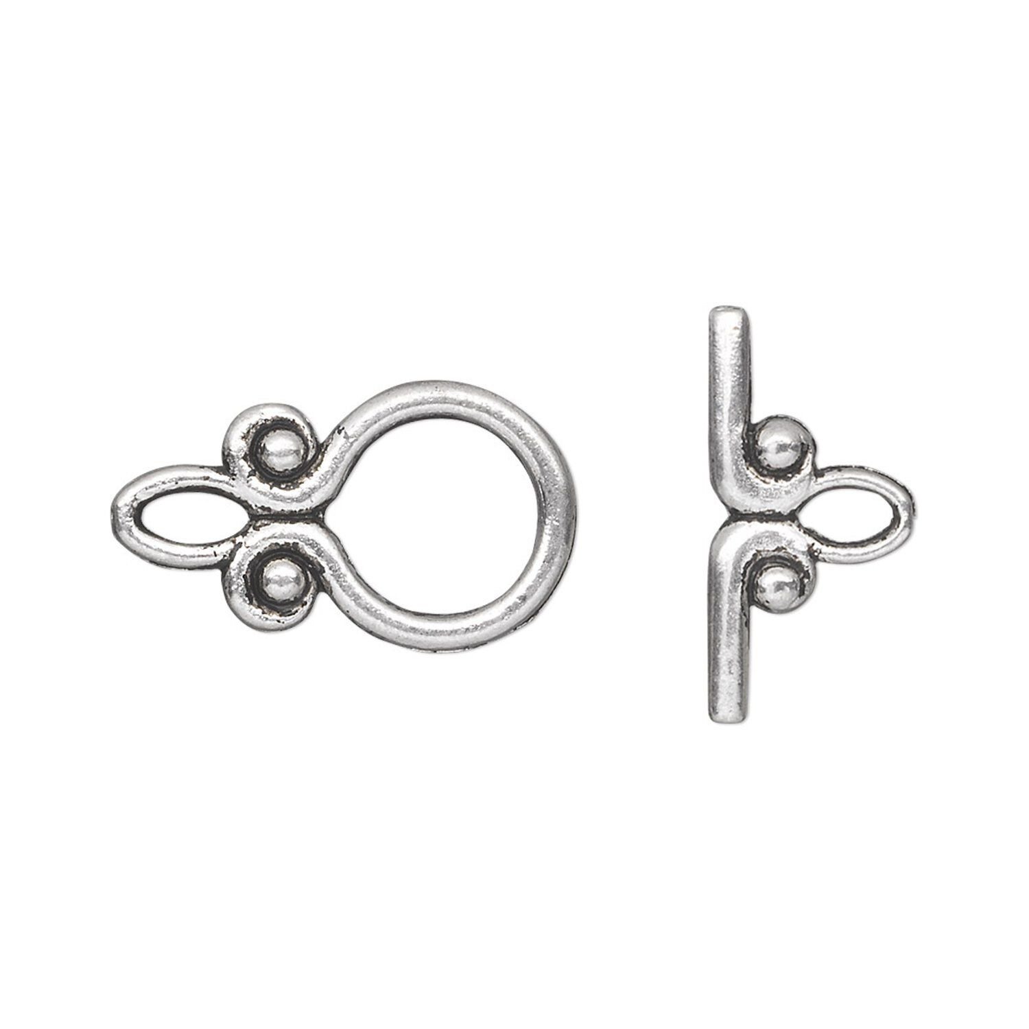 Antique silver-plated toggle clasp in "pewter" (zinc-based alloy) works great as the focal of a necklace or the perfect way to complete a themed design.