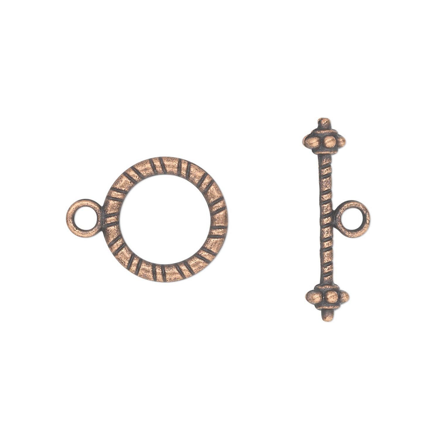 Complete copper jewelry designs with antique copper-plated toggle clasps, made with "pewter" (zinc-based alloy).