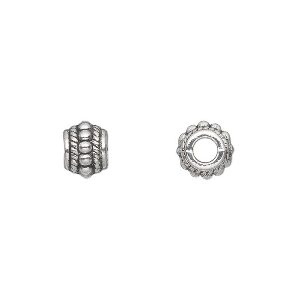Bead, antique silver-plated "pewter" (zinc-based alloy), 8x6mm beaded barrel. Sold per pkg of 100.