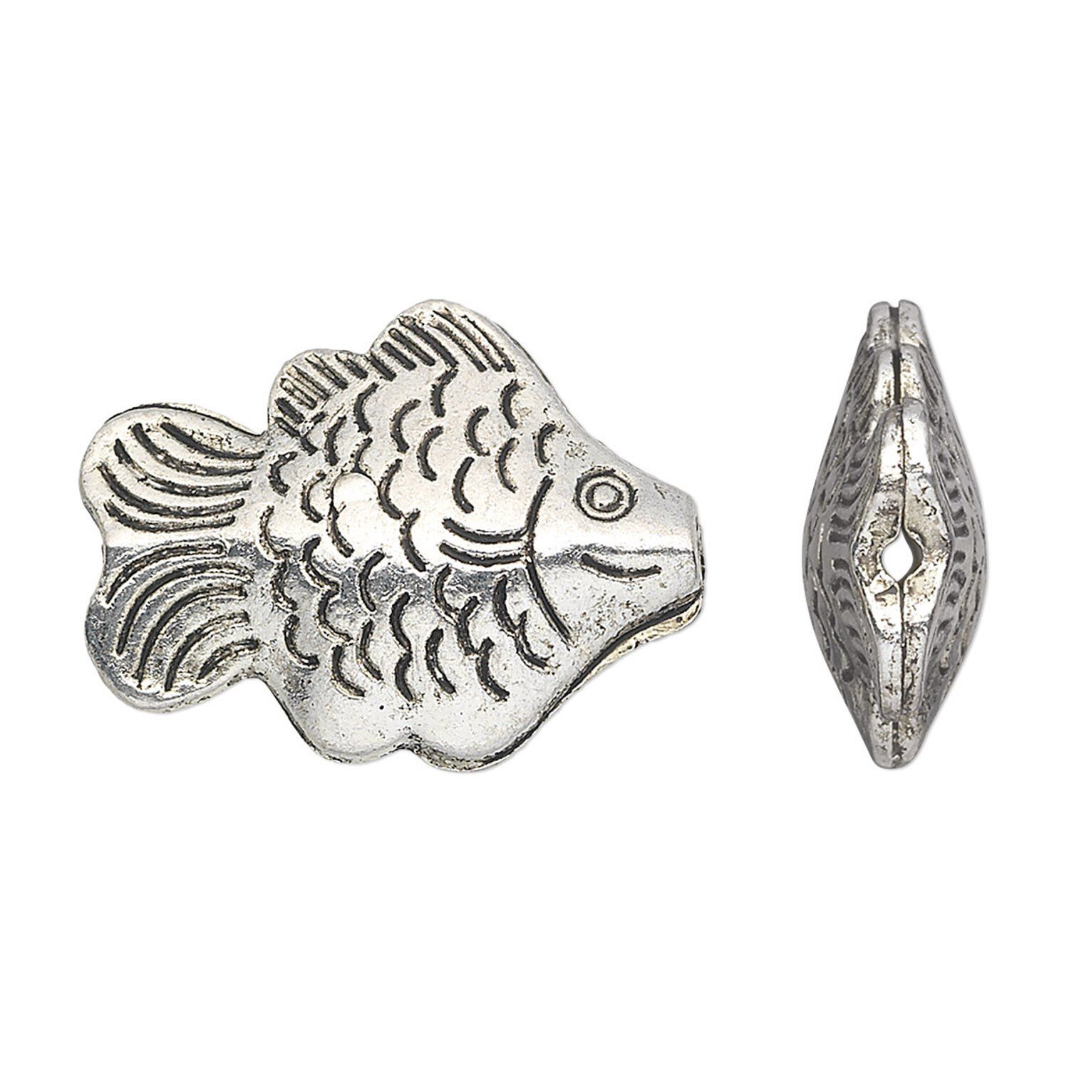 Antique silver-plated hollow fish beads add playful appeal to jewelry designs.