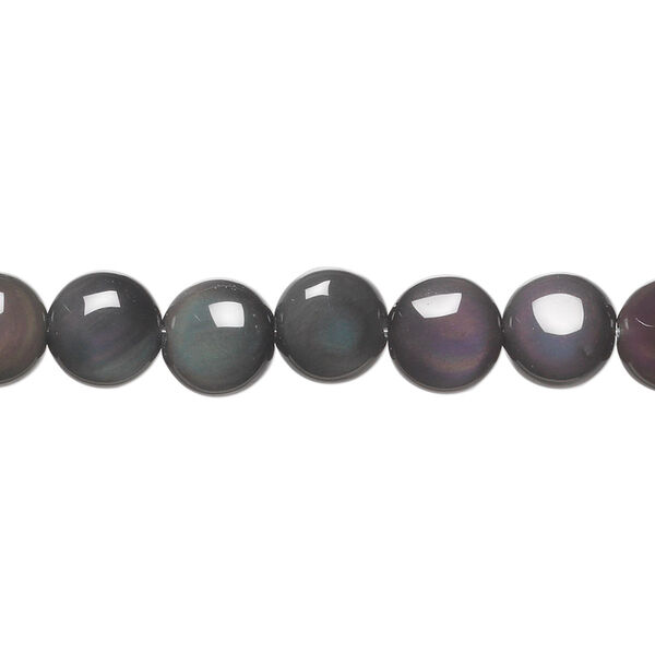 Rainbow obsidian 1pkg1, flat round bead natural 15.5-16 inch 8mm