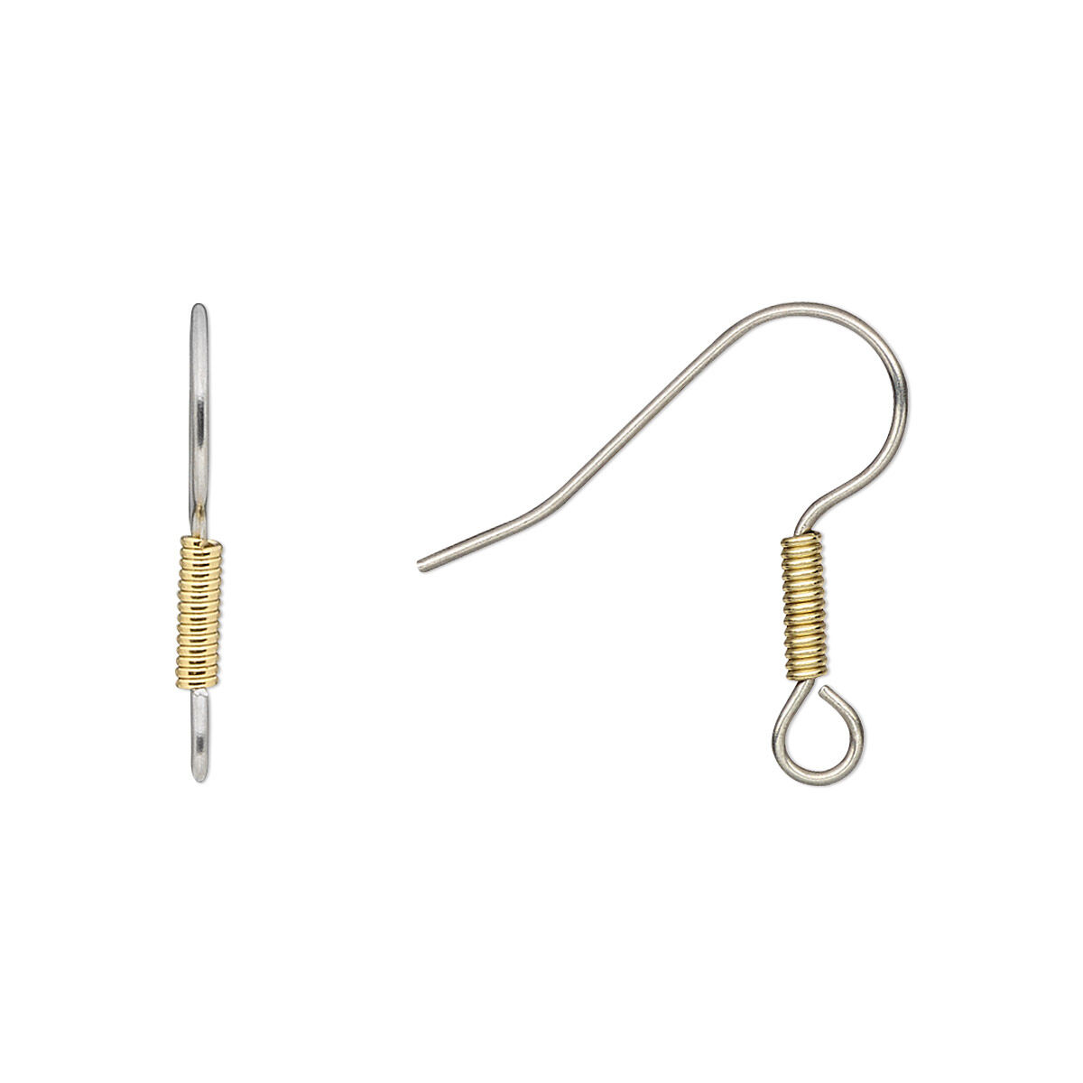 Stainless steel fishhook earrings feature a gold-finished brass coil accent. Ear wires include a loop to embellish with any number of components.